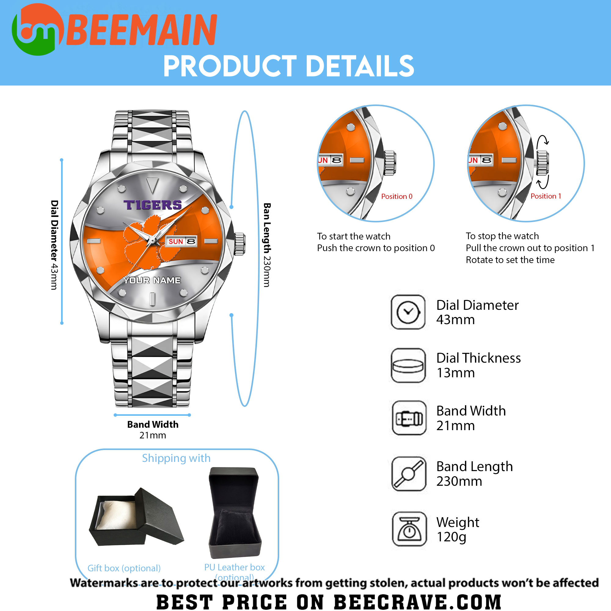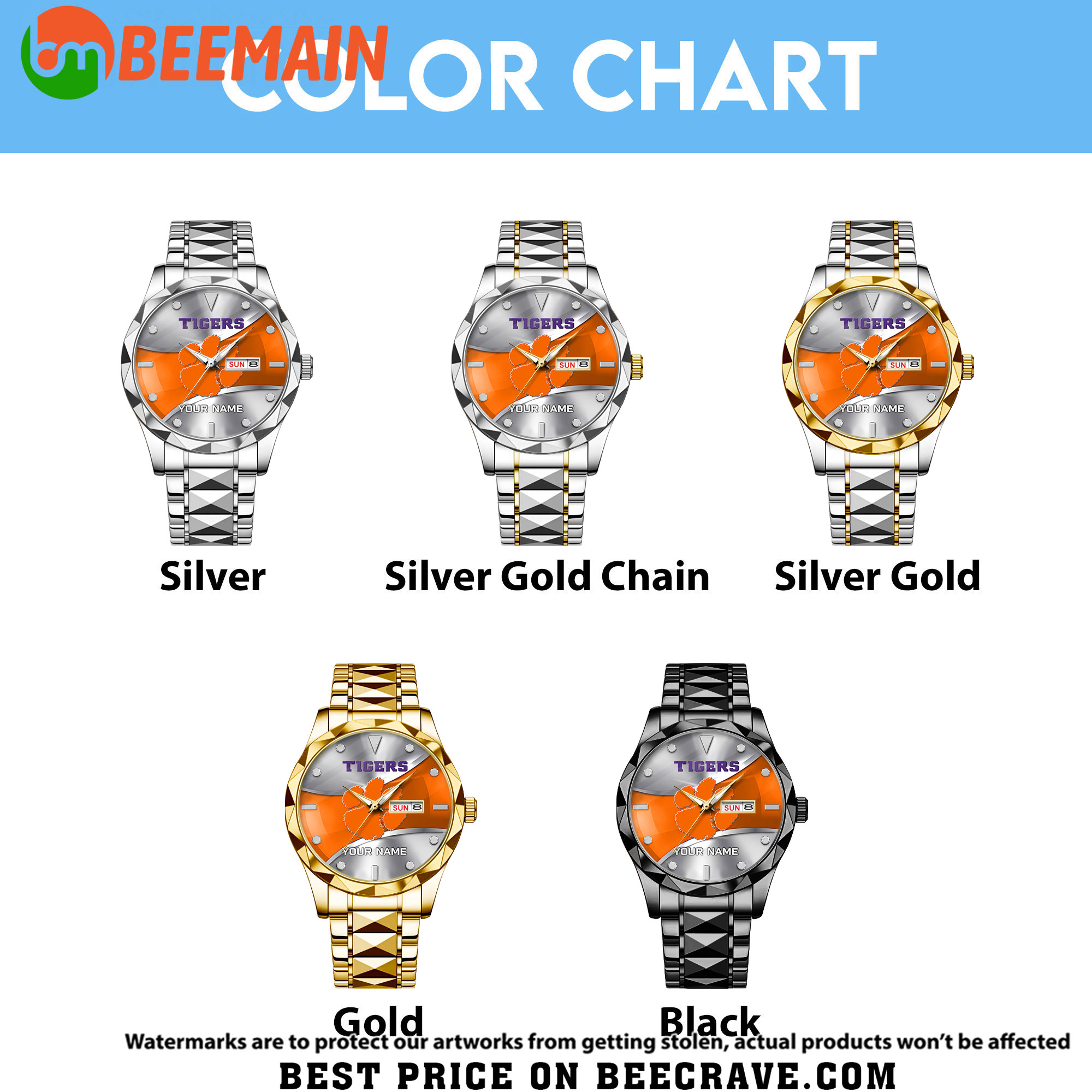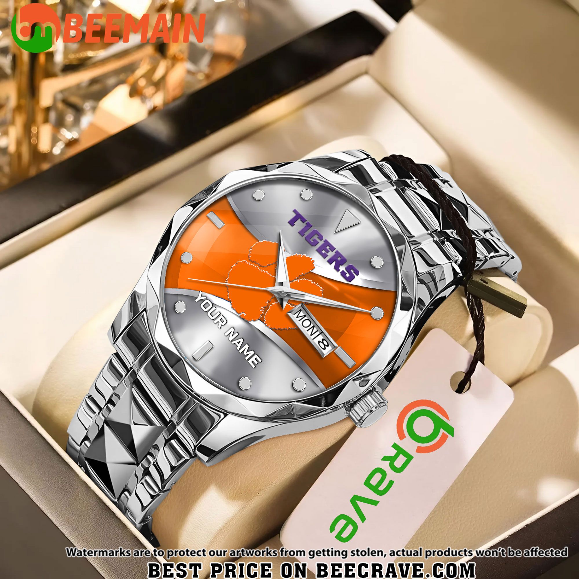 ZNCAA Clemson Tigers – Football Alloy Luxury Quartz Watch – Custom Name