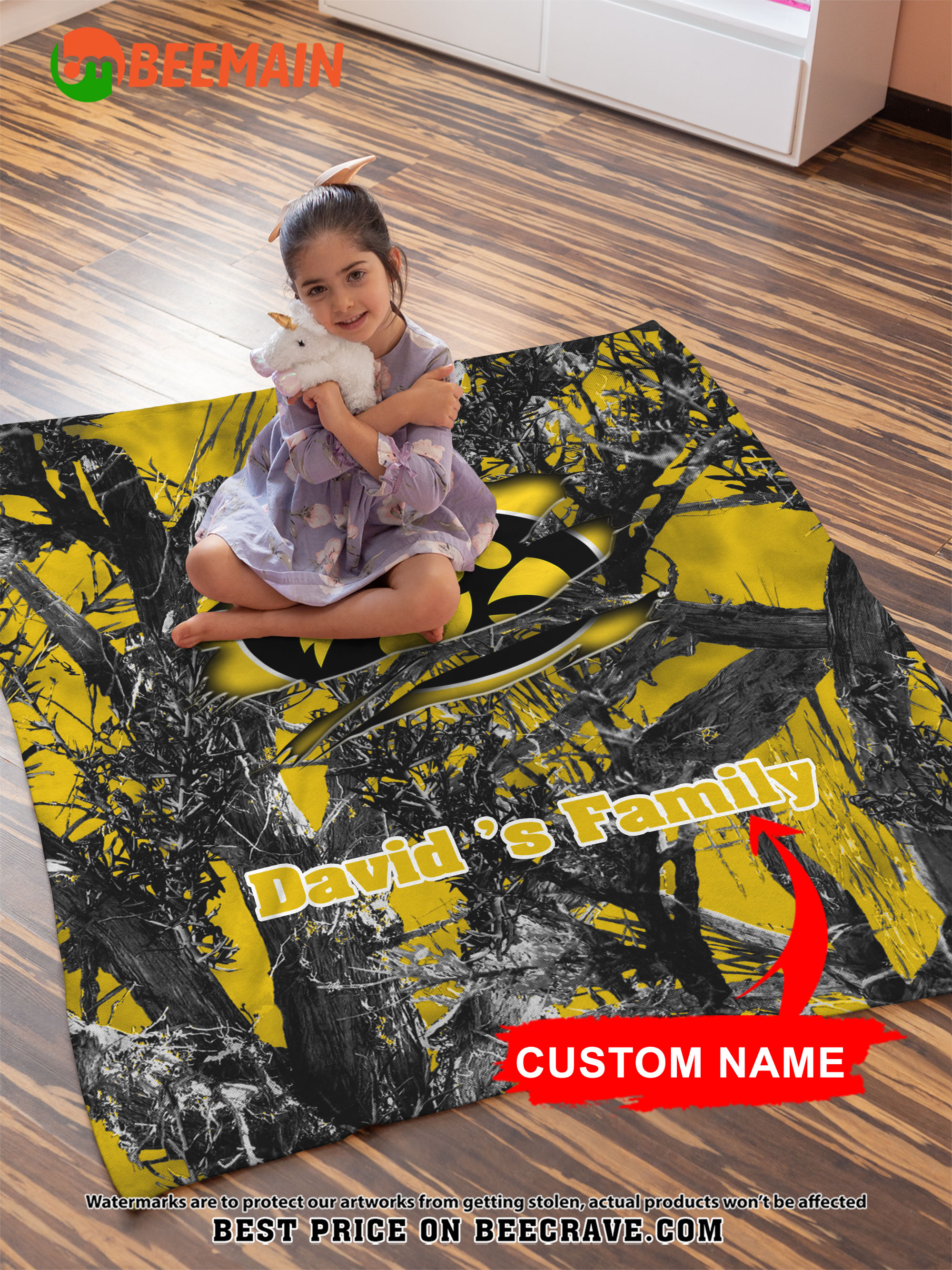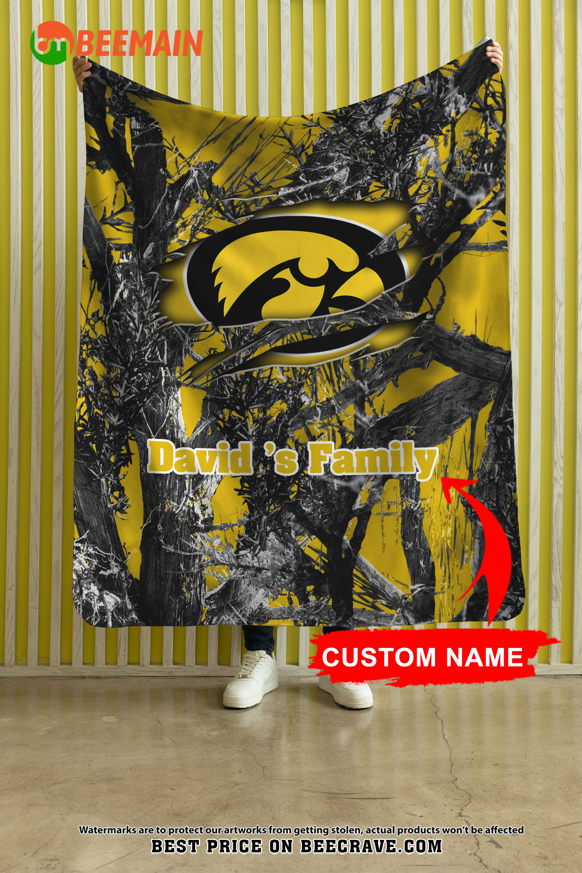 NCAA Iowa Hawkeyes – Football Camo Blanket – Custom Name