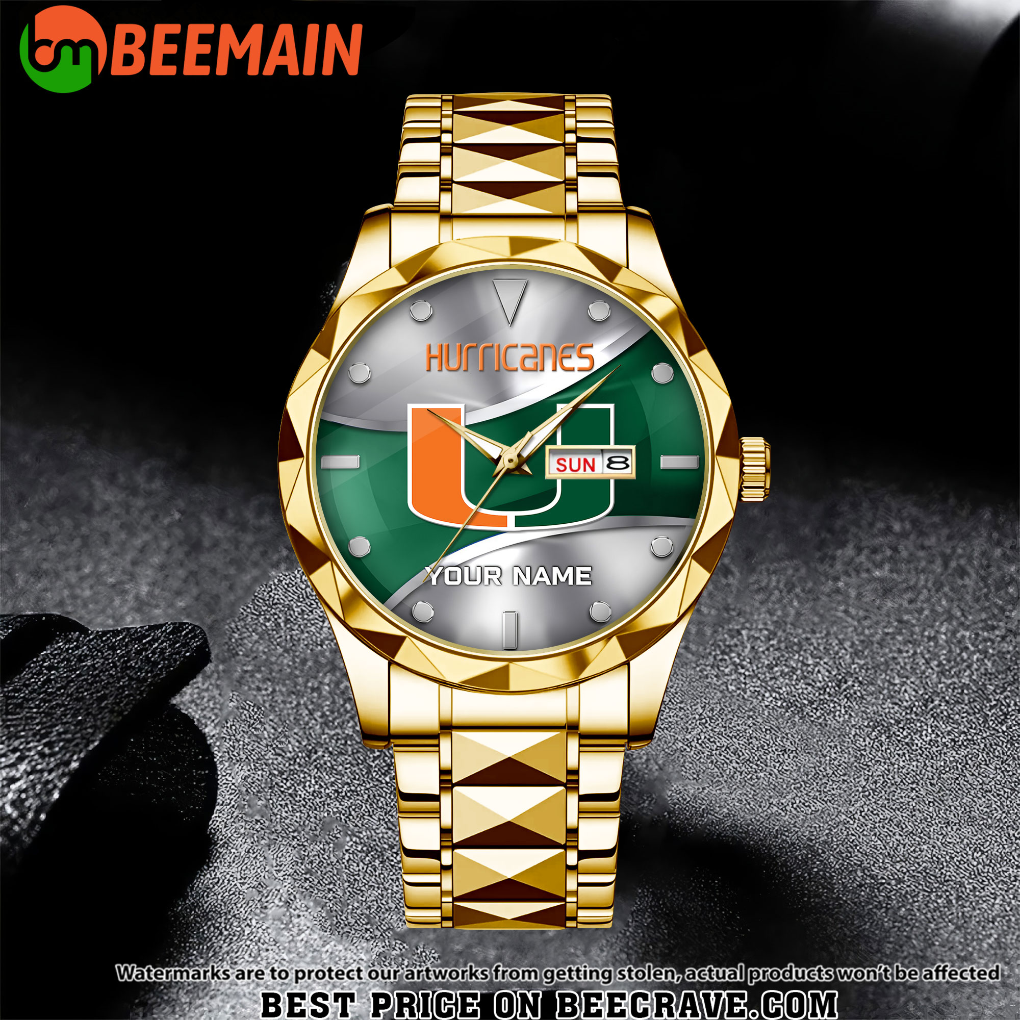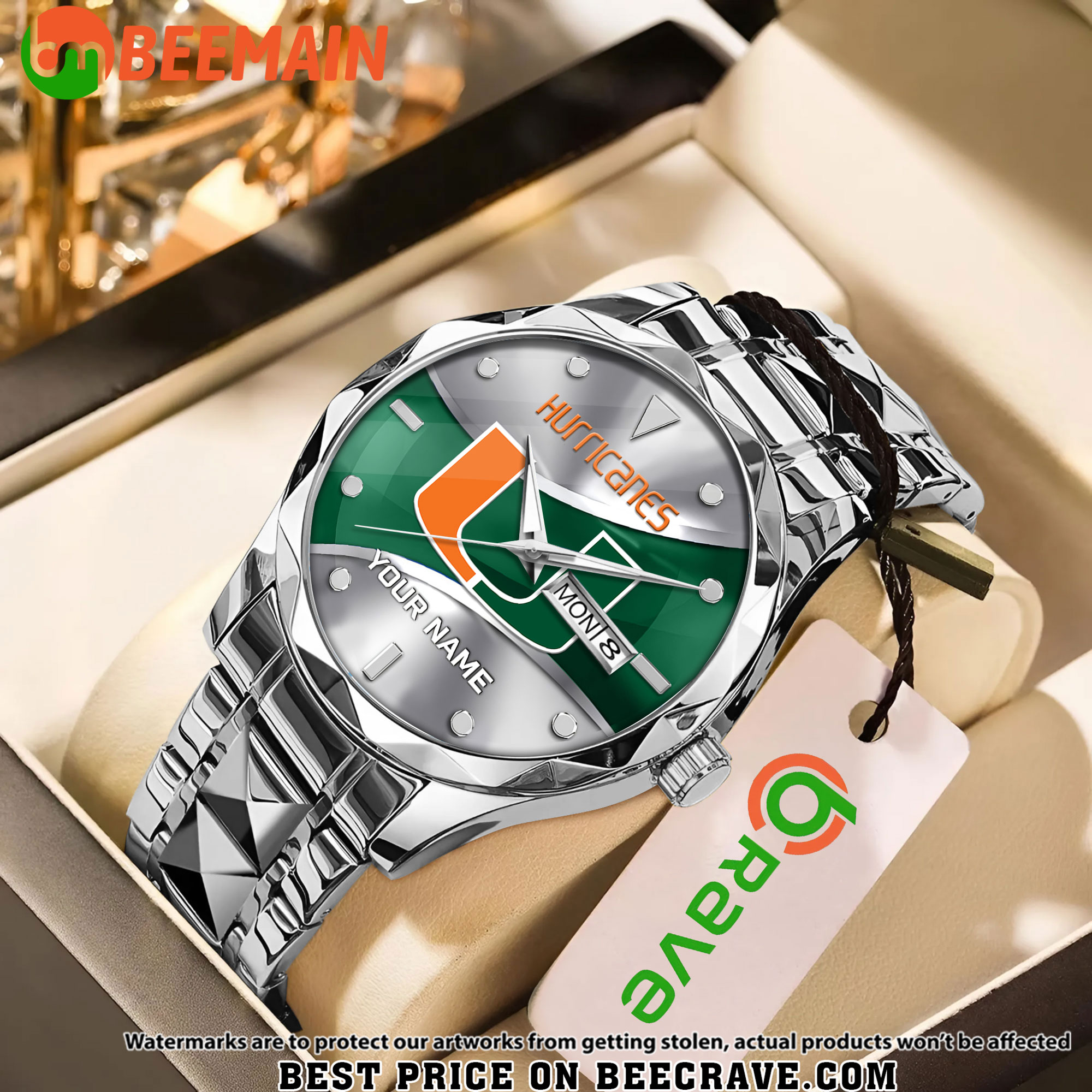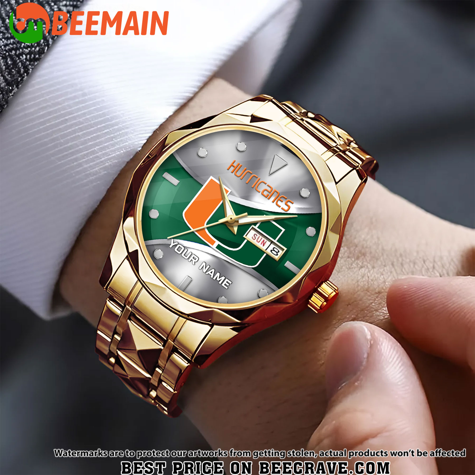 NCAA Miami Hurricanes – Football Alloy Luxury Quartz Watch – Custom Name