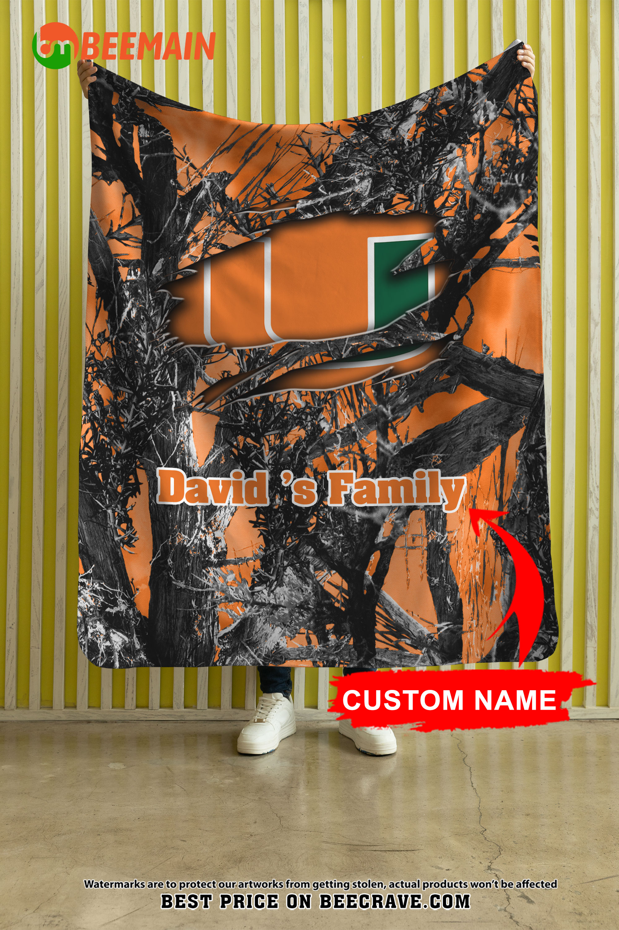 NCAA Miami Hurricanes – Football Camo Blanket – Custom Name