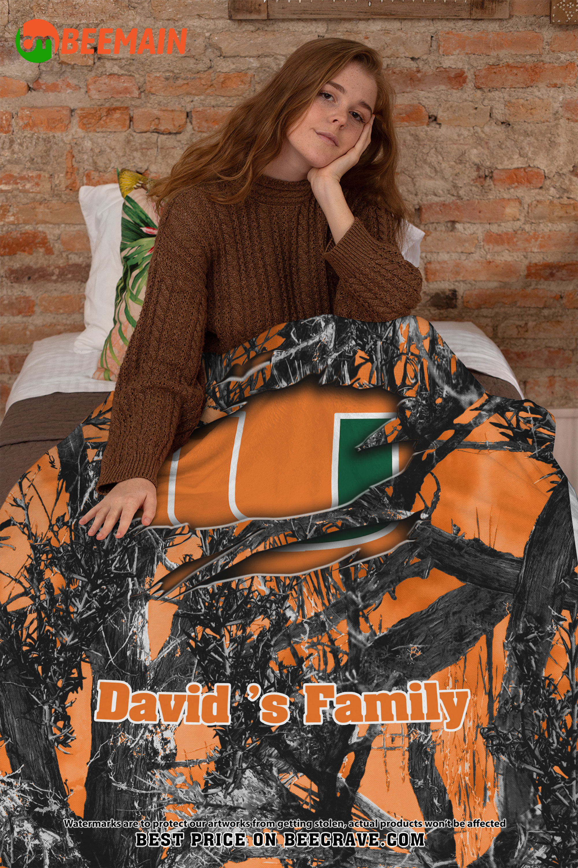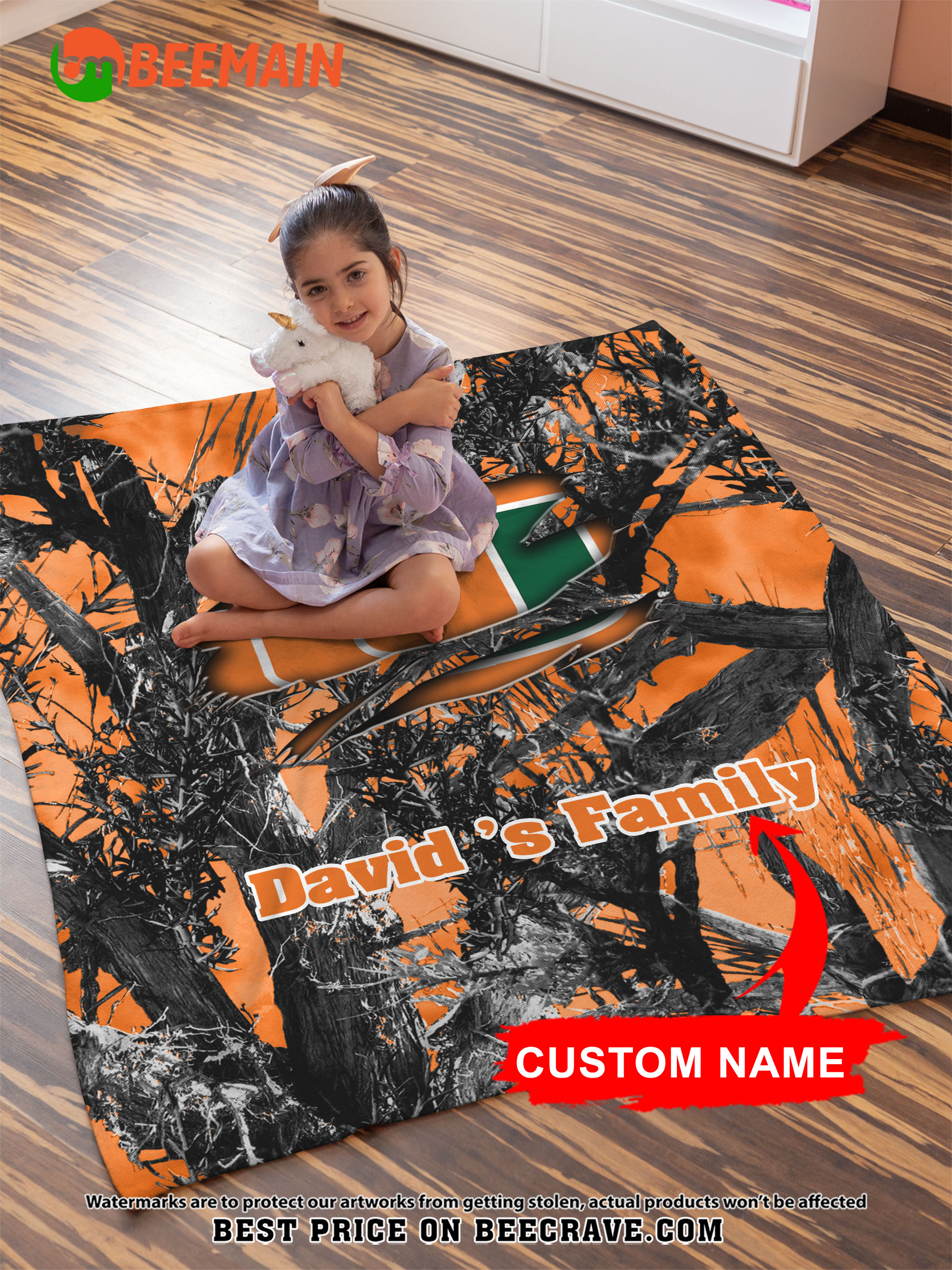 ZNCAA Miami Hurricanes – Football Camo Blanket – Custom Name