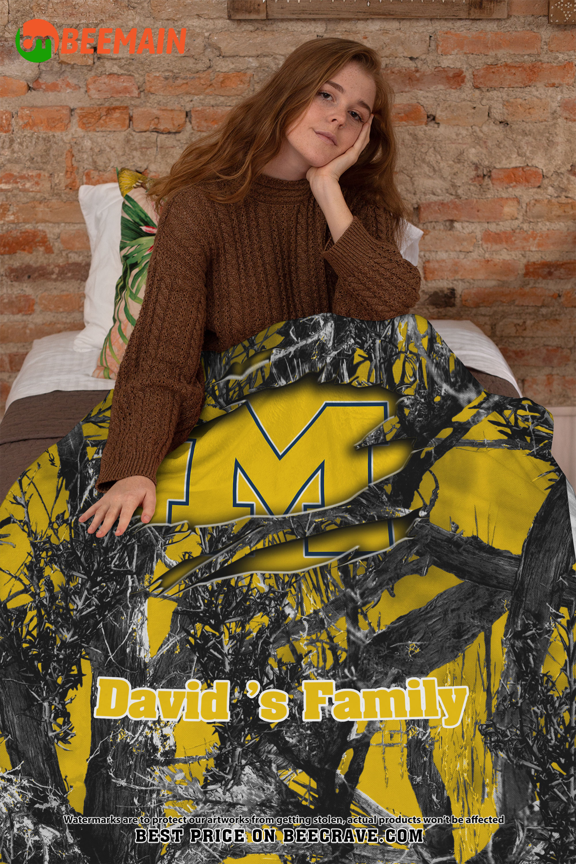 ZNCAA Michigan Wolverines – Football Camo Blanket – Custom Name