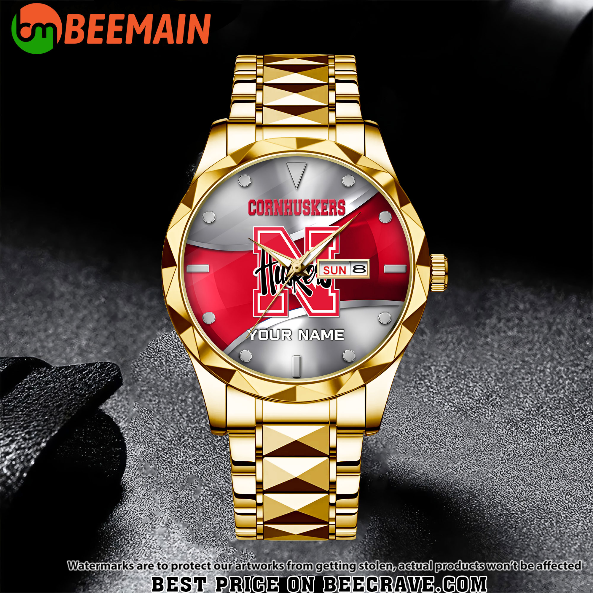NCAA Nebraska Cornhuskers – Football Alloy Luxury Quartz Watch – Custom Name