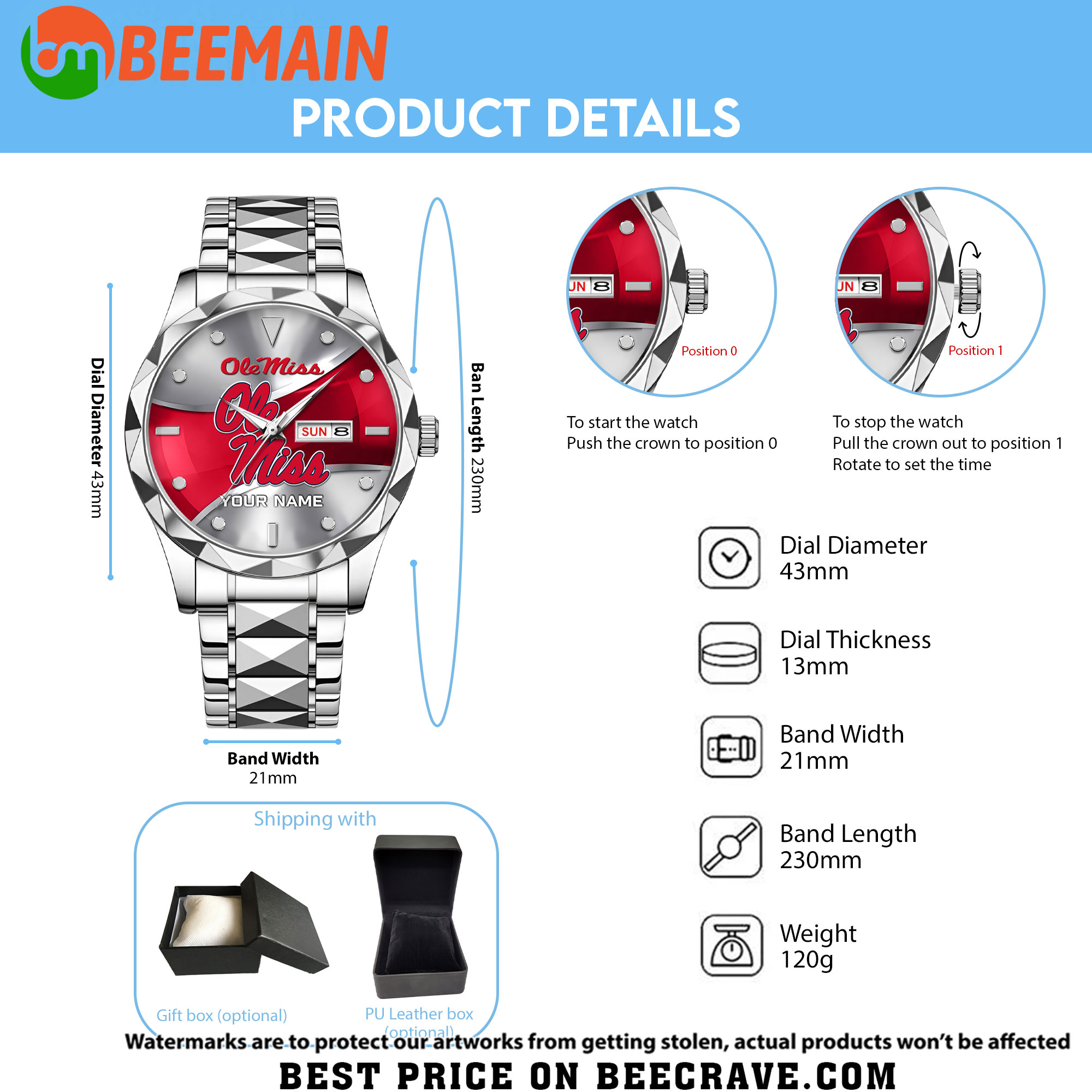 NCAA Ole Miss Rebels – Football Alloy Luxury Quartz Watch – Custom Name