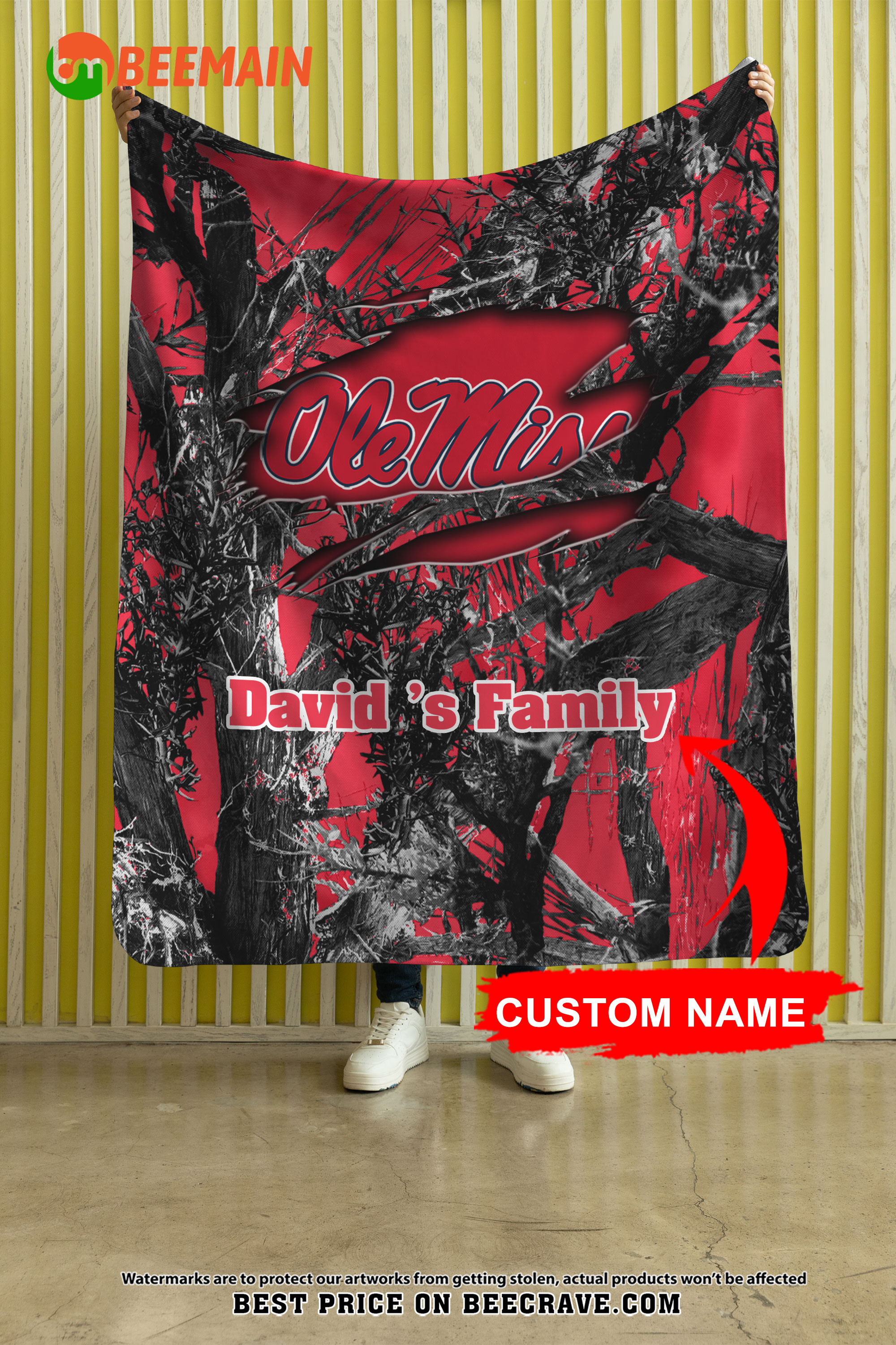 NCAA Ole Miss Rebels – Football Camo Blanket – Custom Name