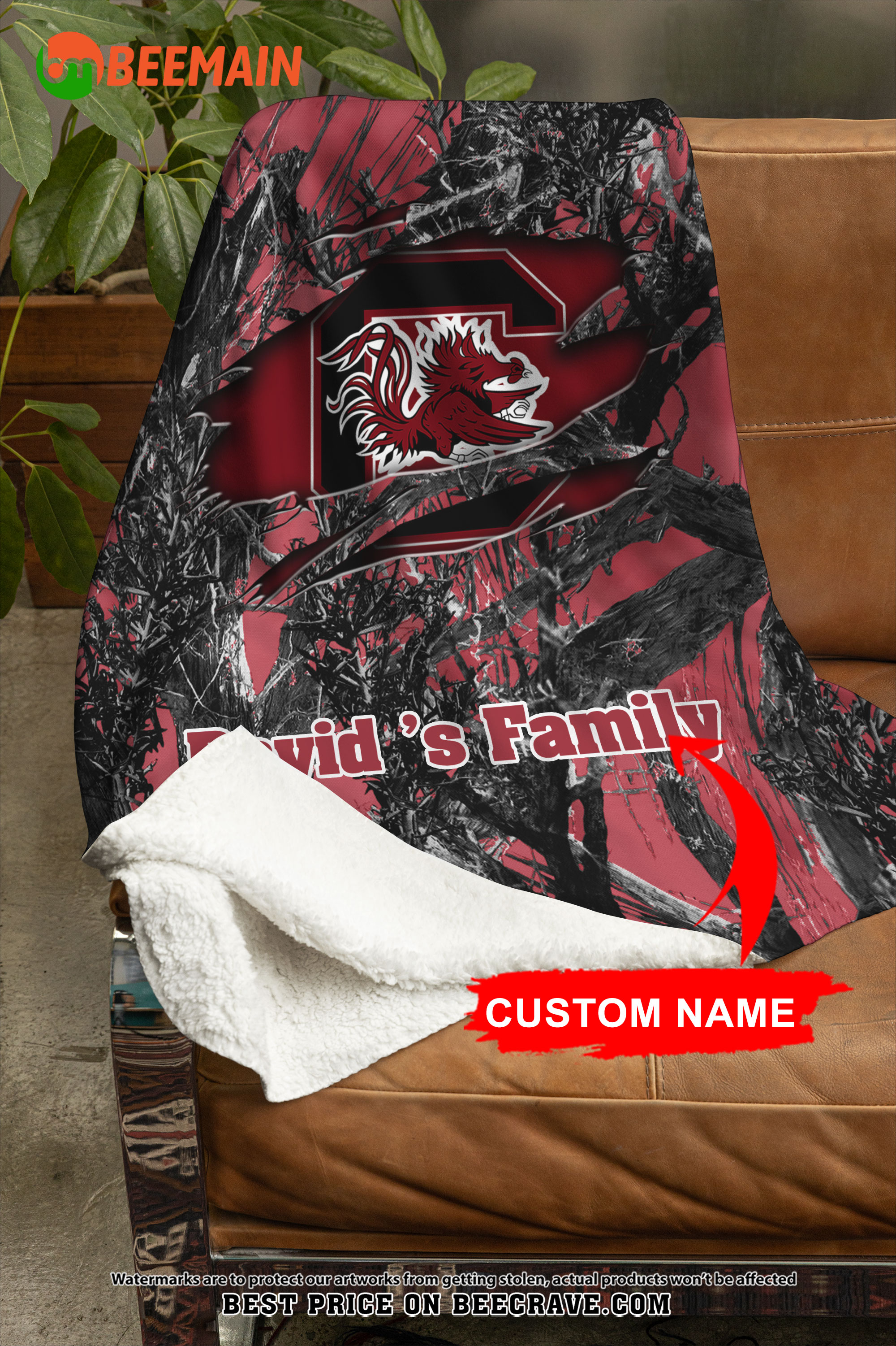 NCAA South Carolina Gamecocks – Football Camo Blanket – Custom Name