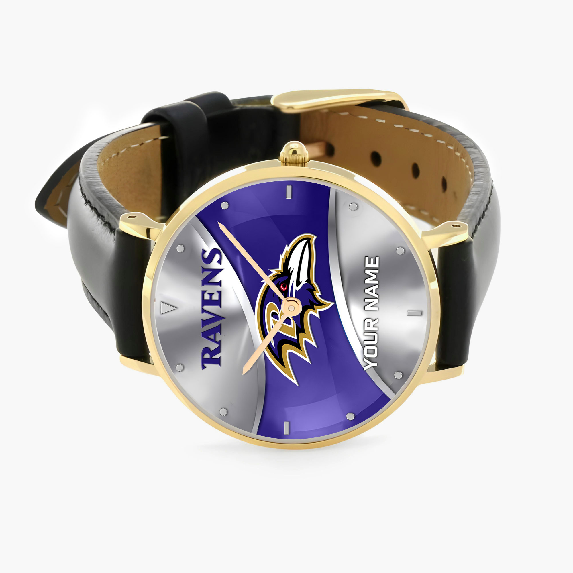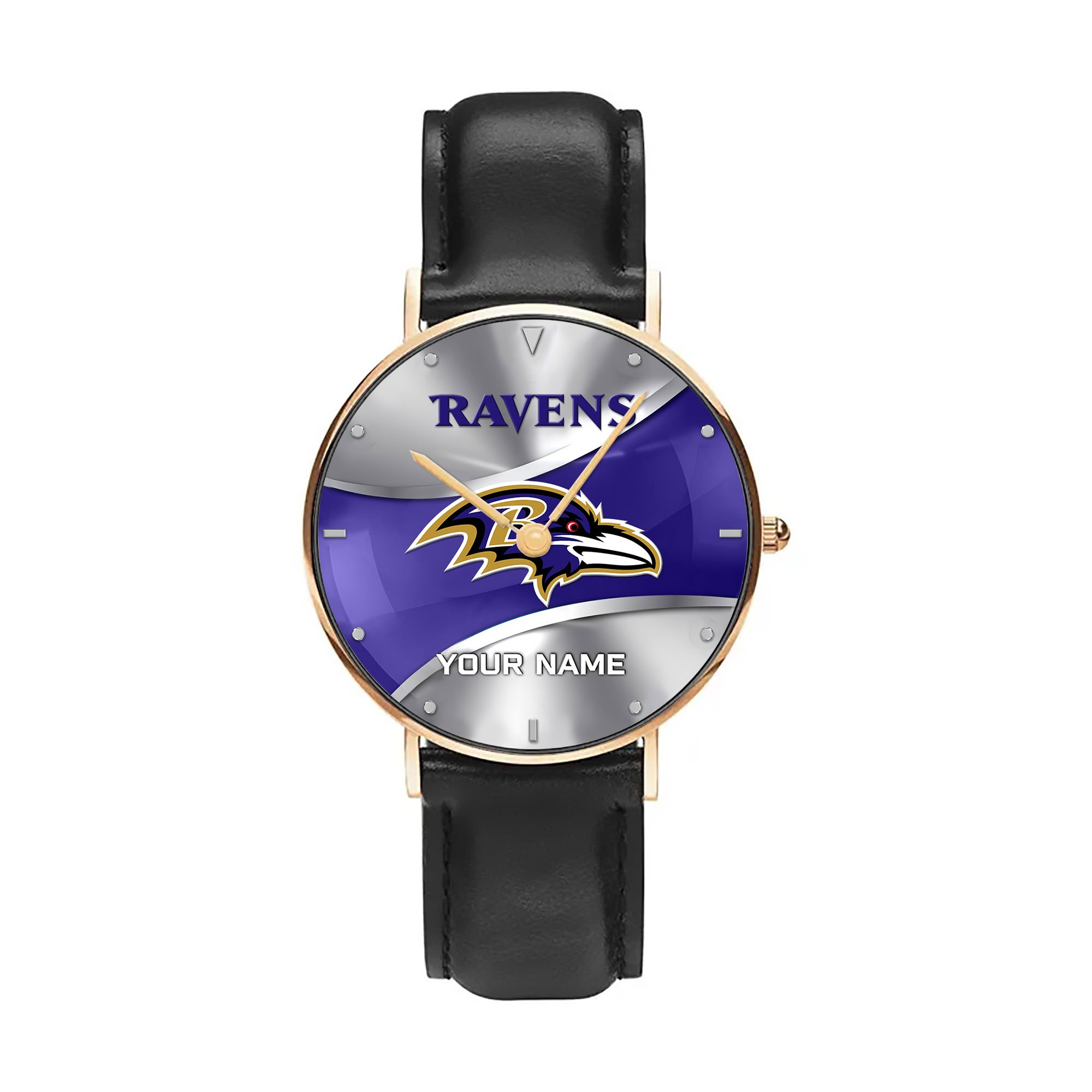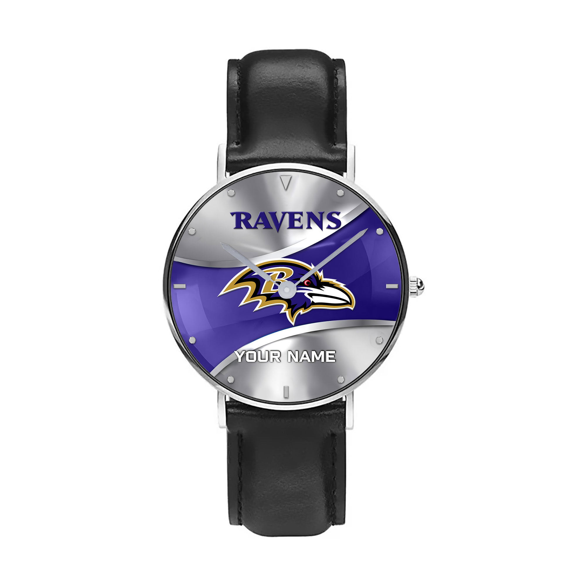 NFL Baltimore Ravens – Football Black Stitched Leather Watch – Custom Name
