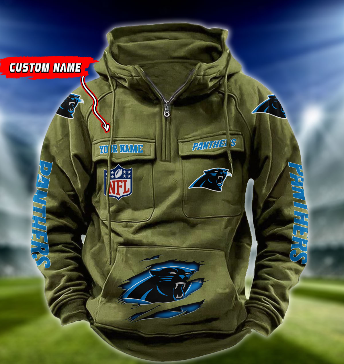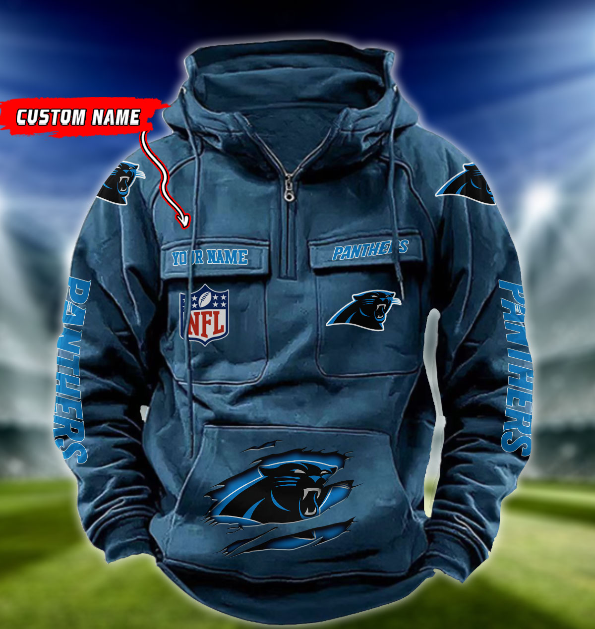 NFL Carolina Panthers – Football Men’s Zip-Up Hoodie – Custom Name