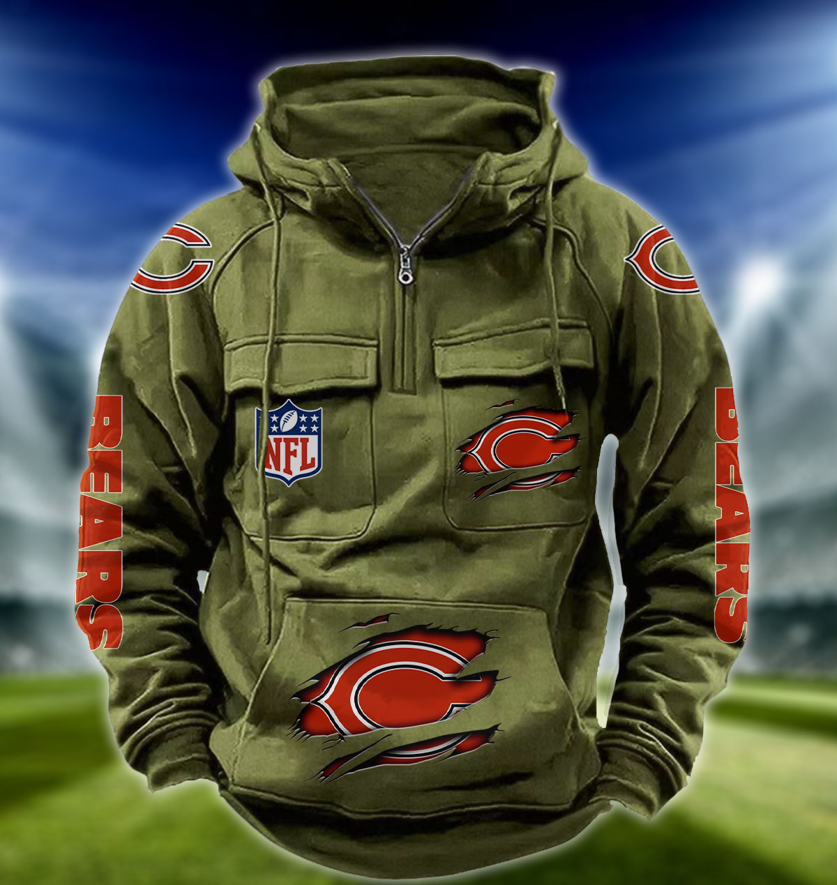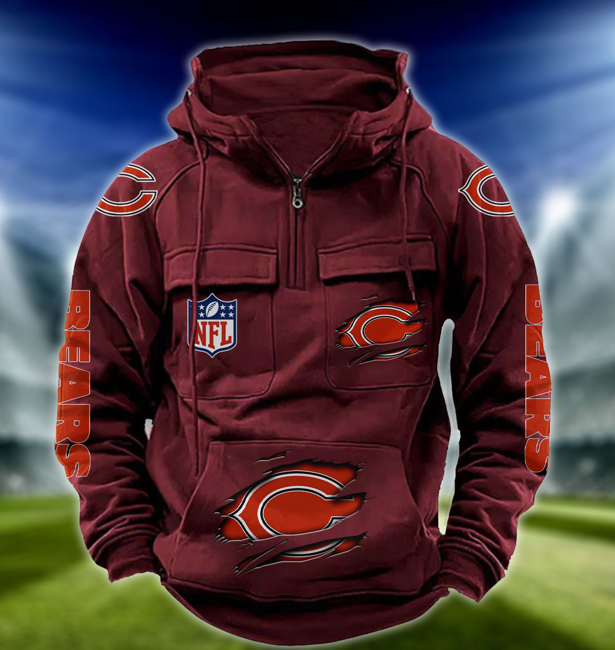 NFL Chicago Bears – Football Men’s Zip-Up Hoodie – Custom Name