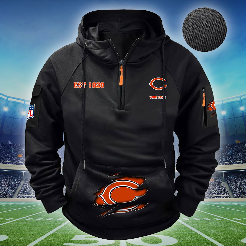 NFL Chicago Bears – Football Men’s Zip-Up Hoodie – Custom Name