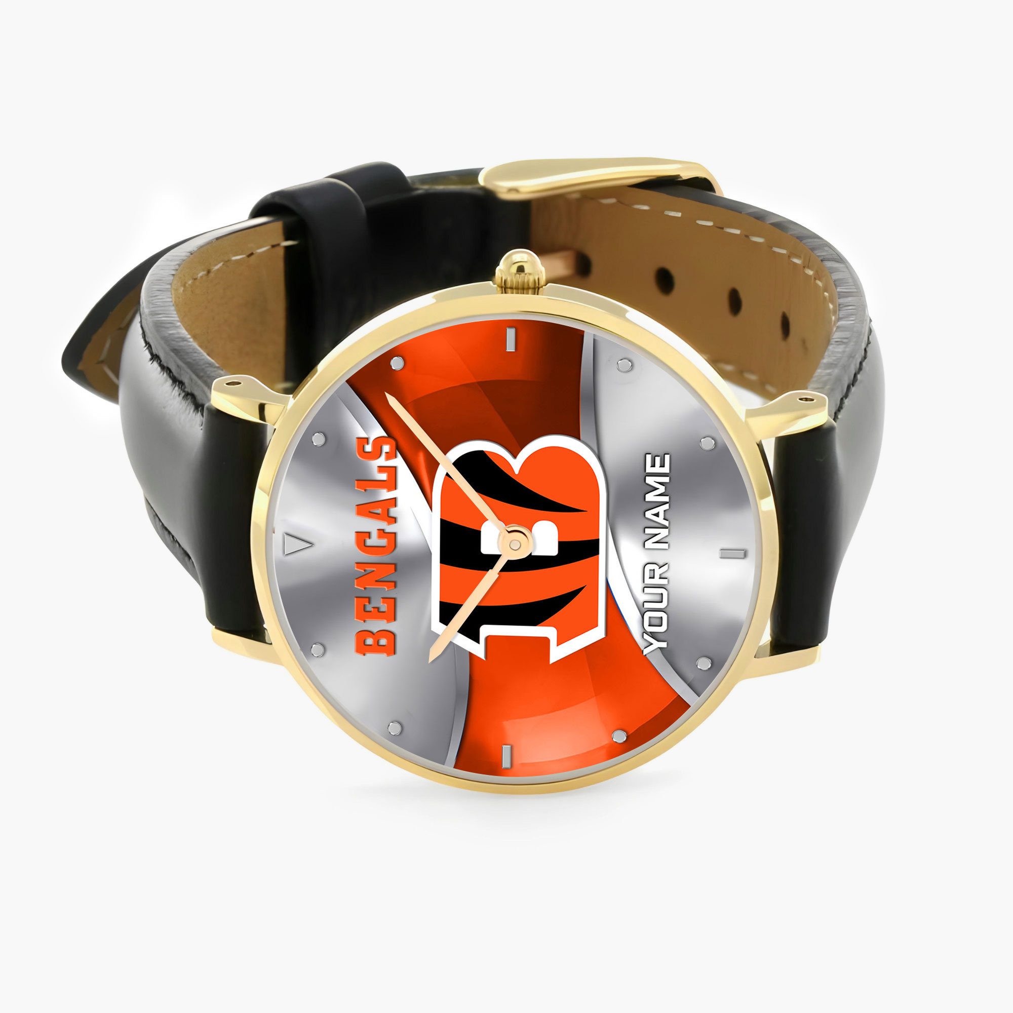 NFL Cincinnati Bengals – Football Black Stitched Leather Watch – Custom Name