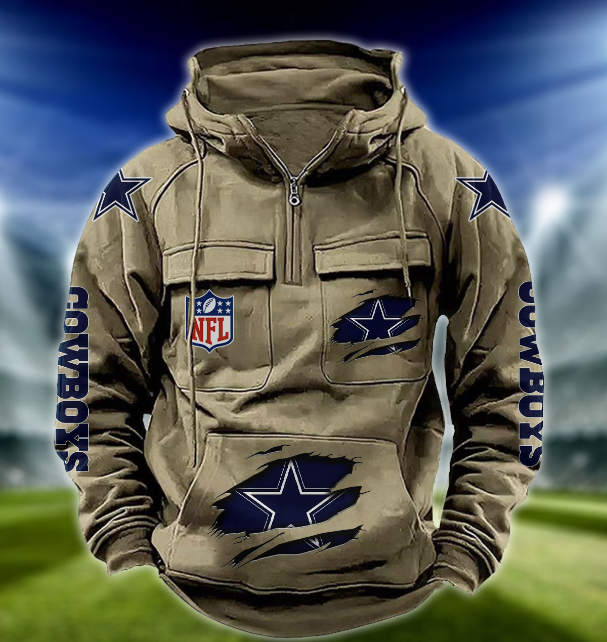 NFL Dallas Cowboys – Football Men’s Zip-Up Hoodie – Custom Name