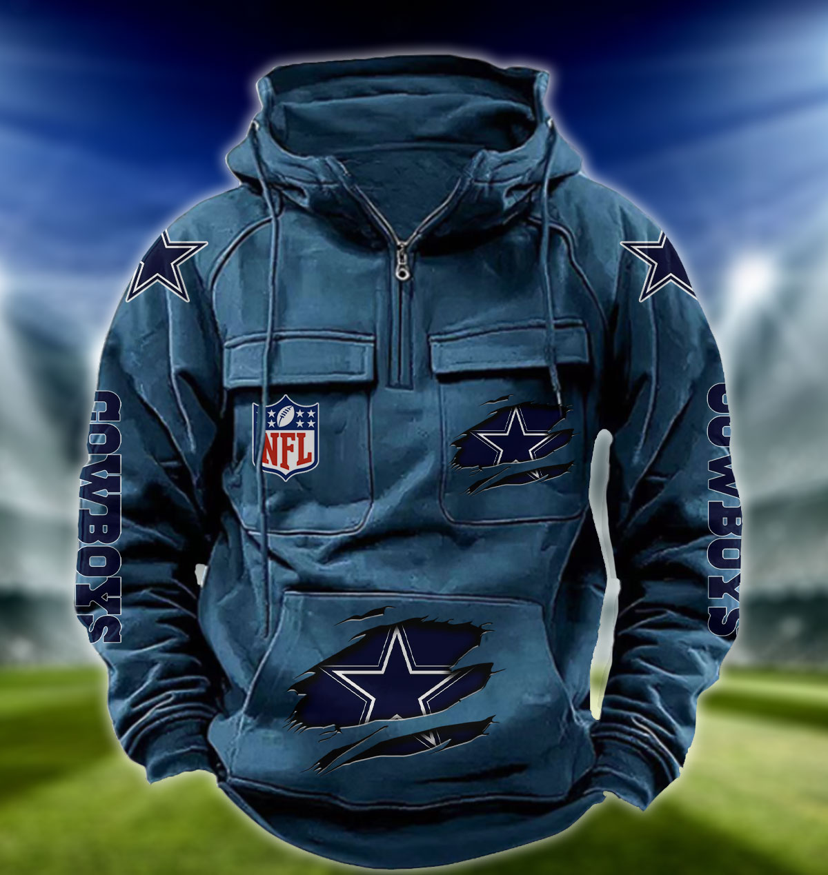 NFL Dallas Cowboys – Football Men’s Zip-Up Hoodie – Custom Name