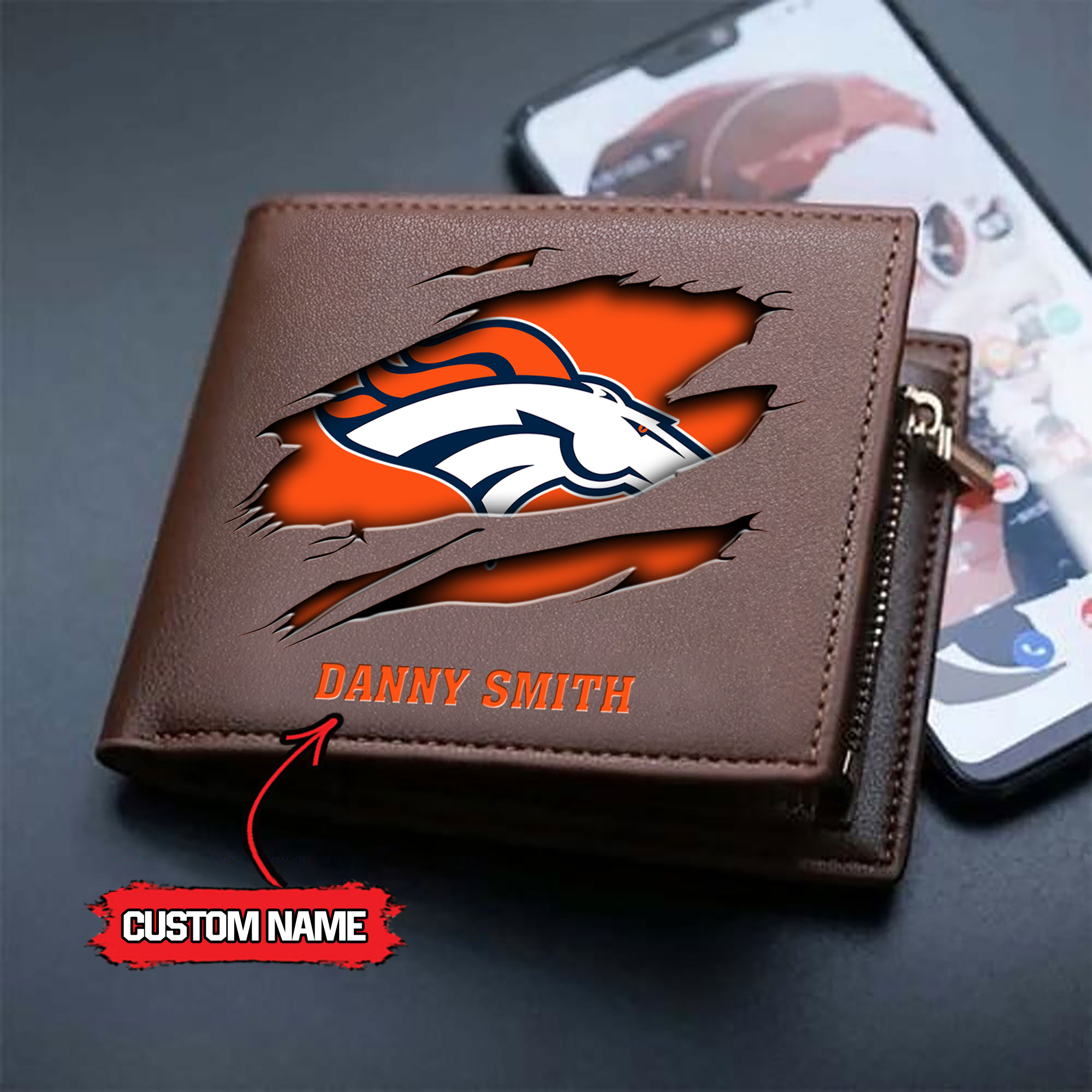 NFL Denver Broncos – Men’s Leather Wallet – Custom Name