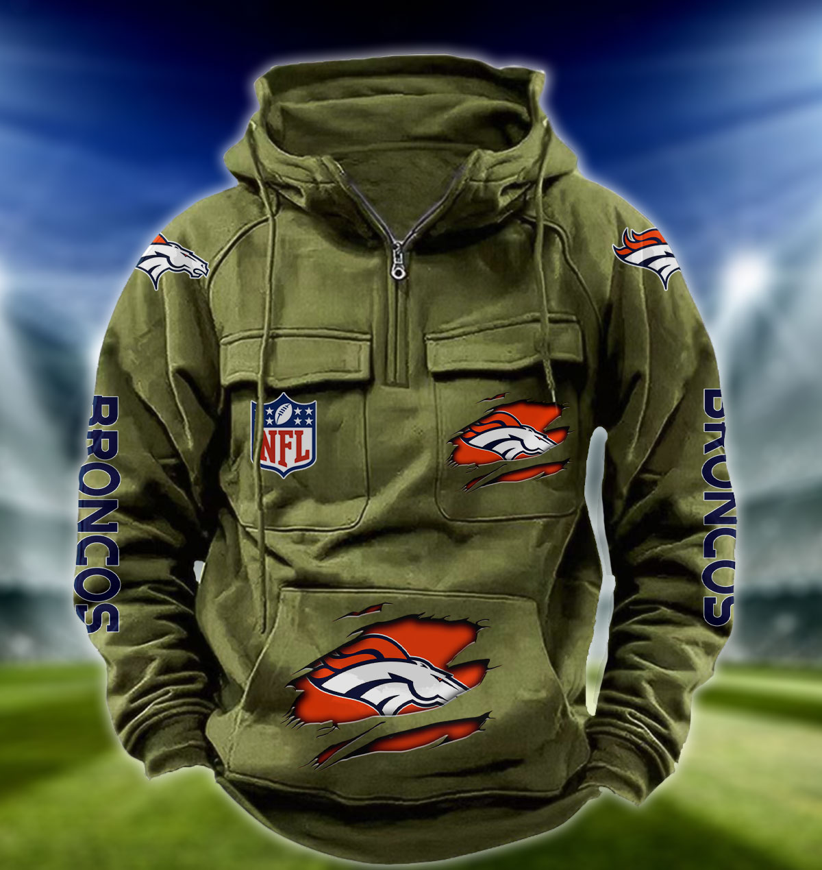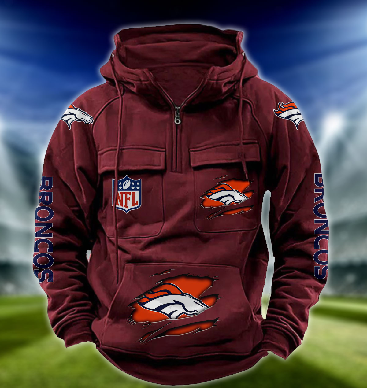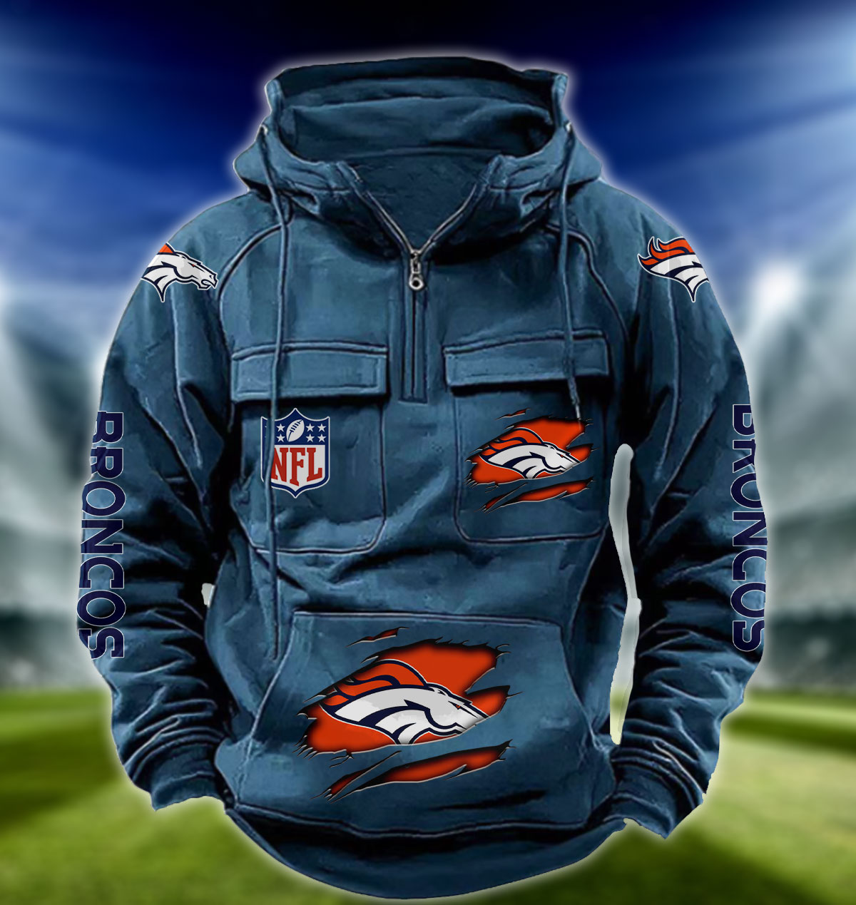 NFL Denver Broncos – Football Men’s Zip-Up Hoodie – Custom Name