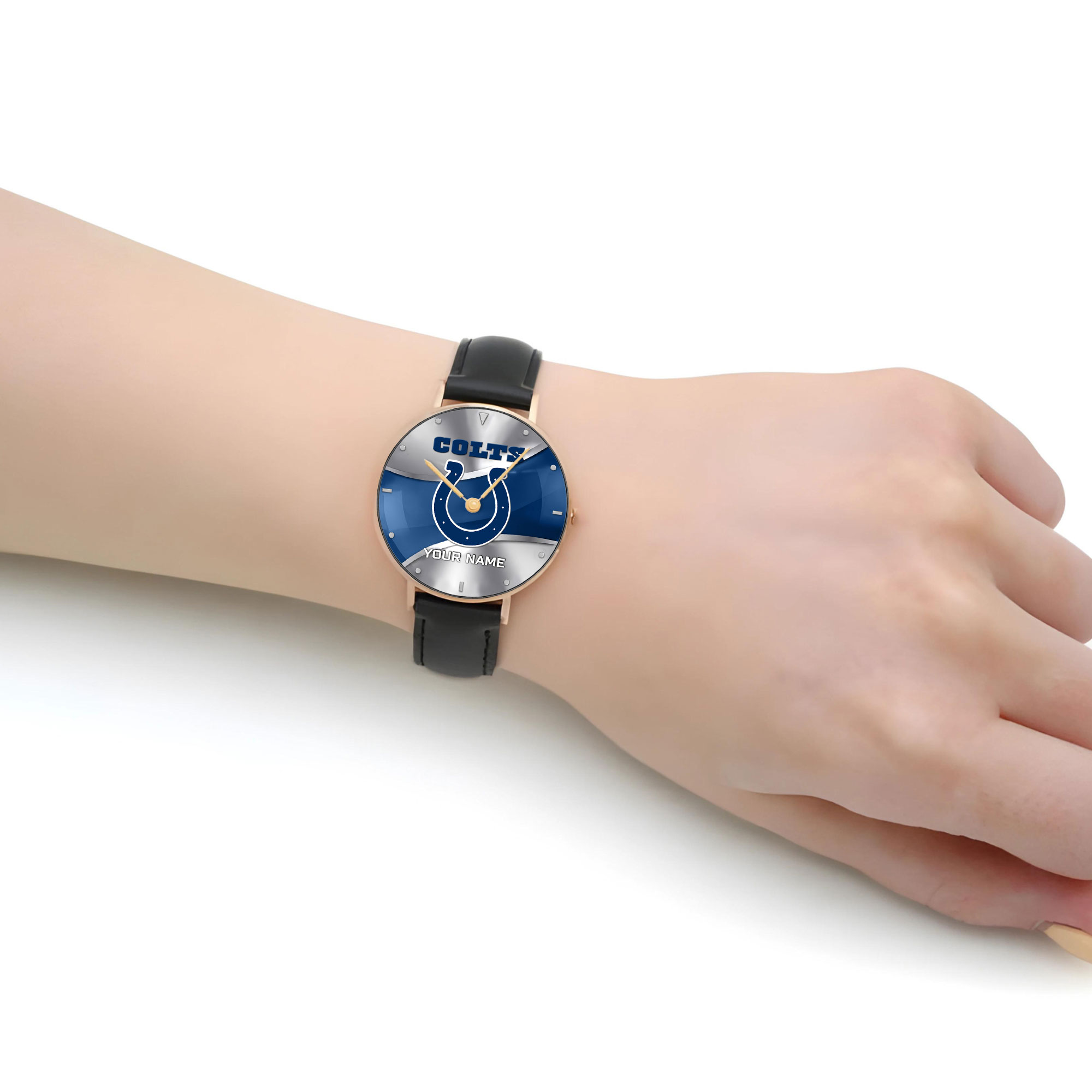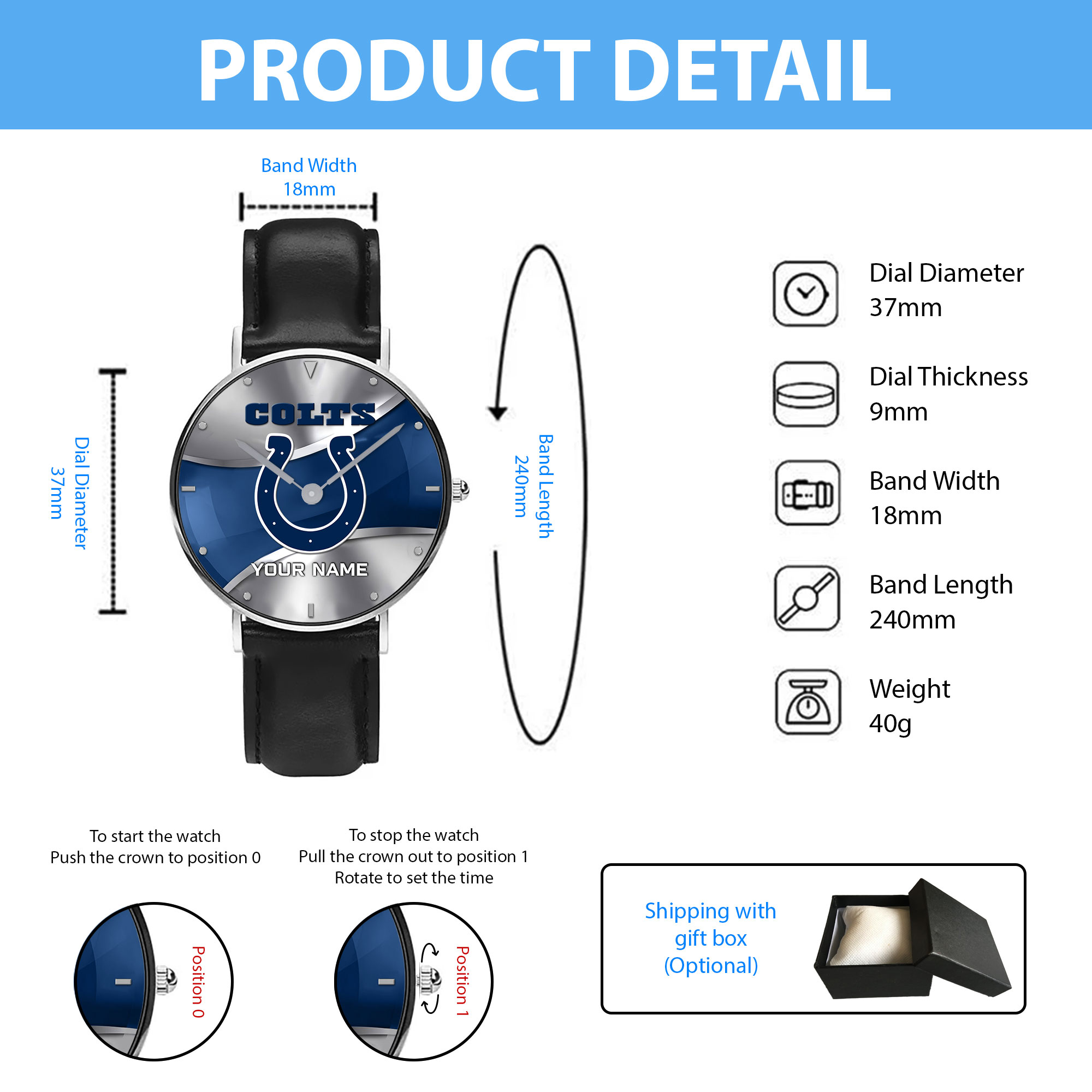 NFL Indianapolis Colts – Football Black Stitched Leather Watch – Custom Name