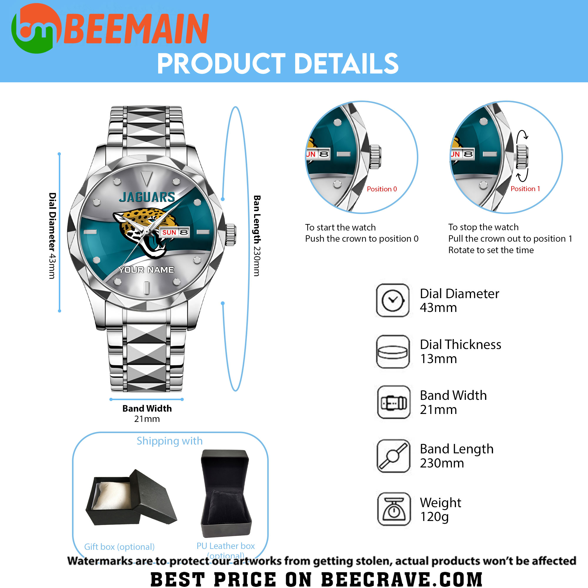 NFL Jacksonville Jaguars – Football Alloy Luxury Quartz Watch – Custom Name