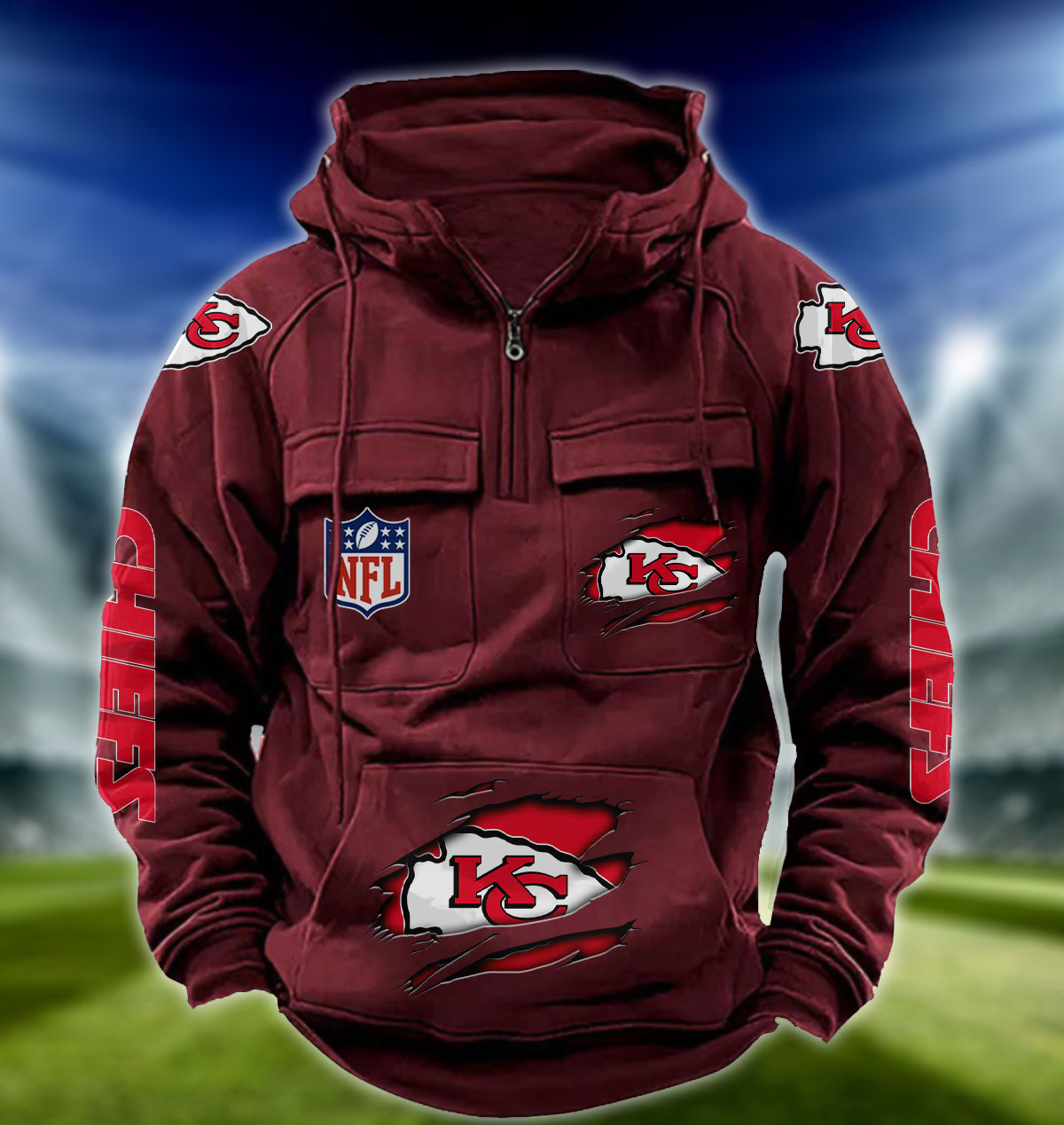 NFL Kansas City Chiefs – Football Men’s Zip-Up Hoodie – Custom Name