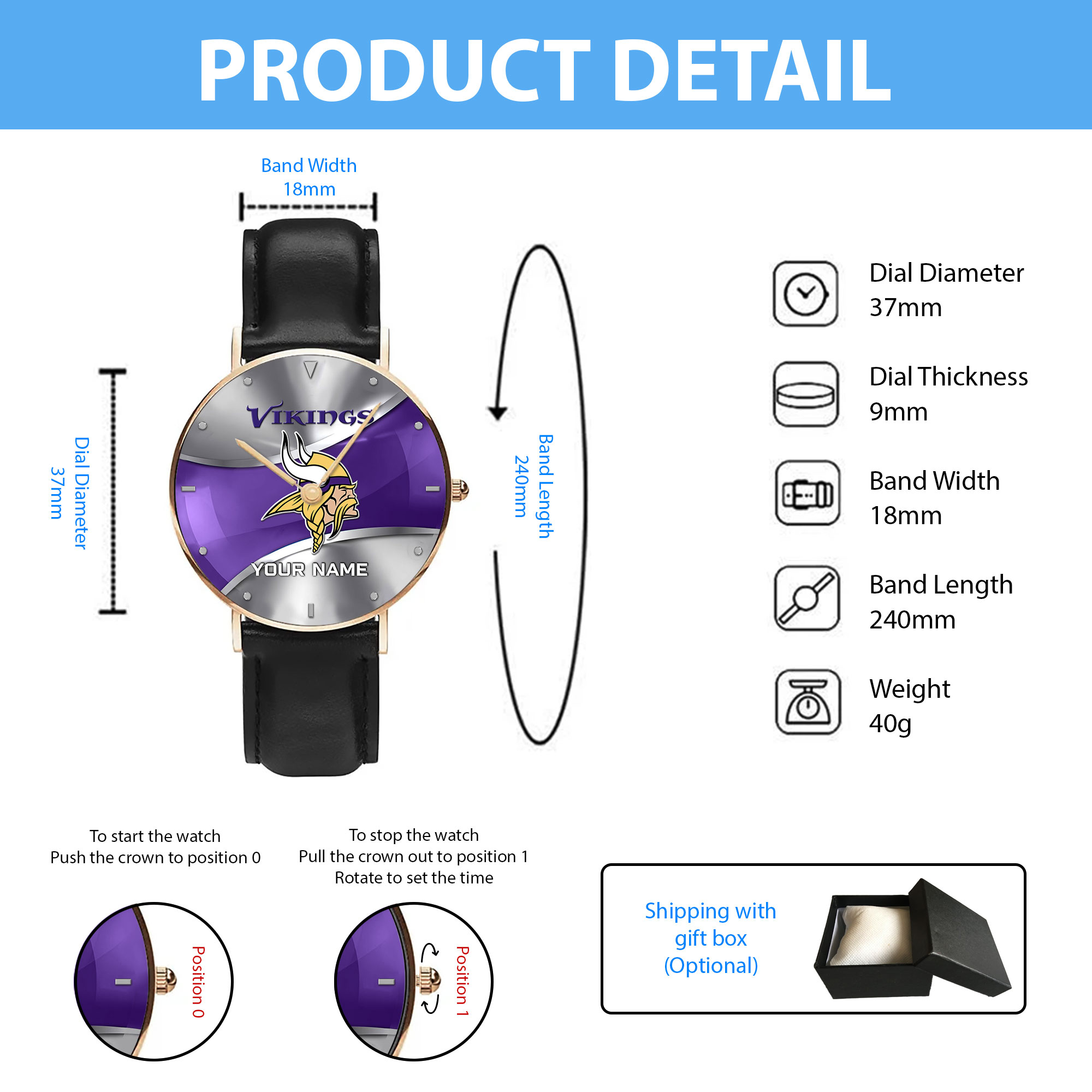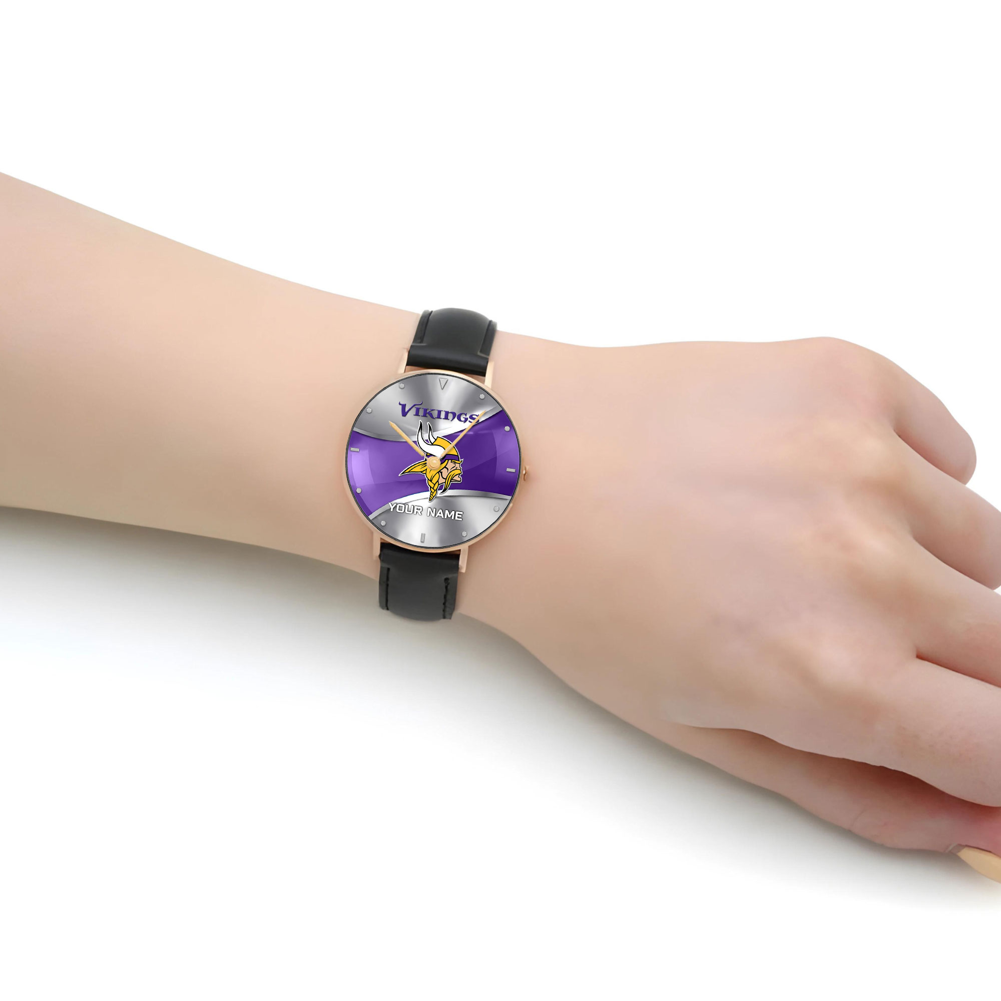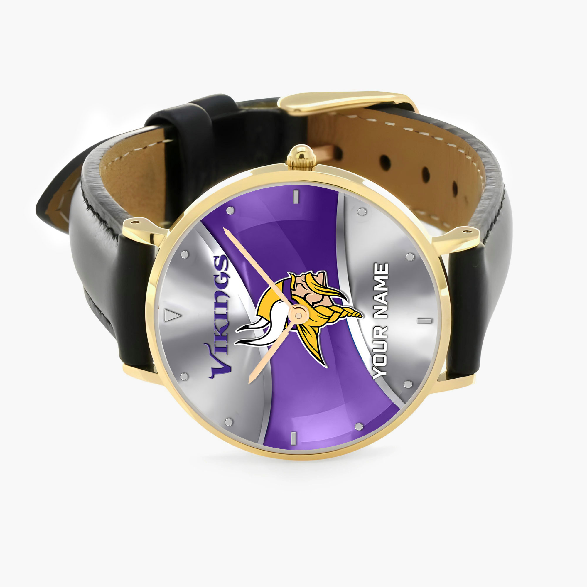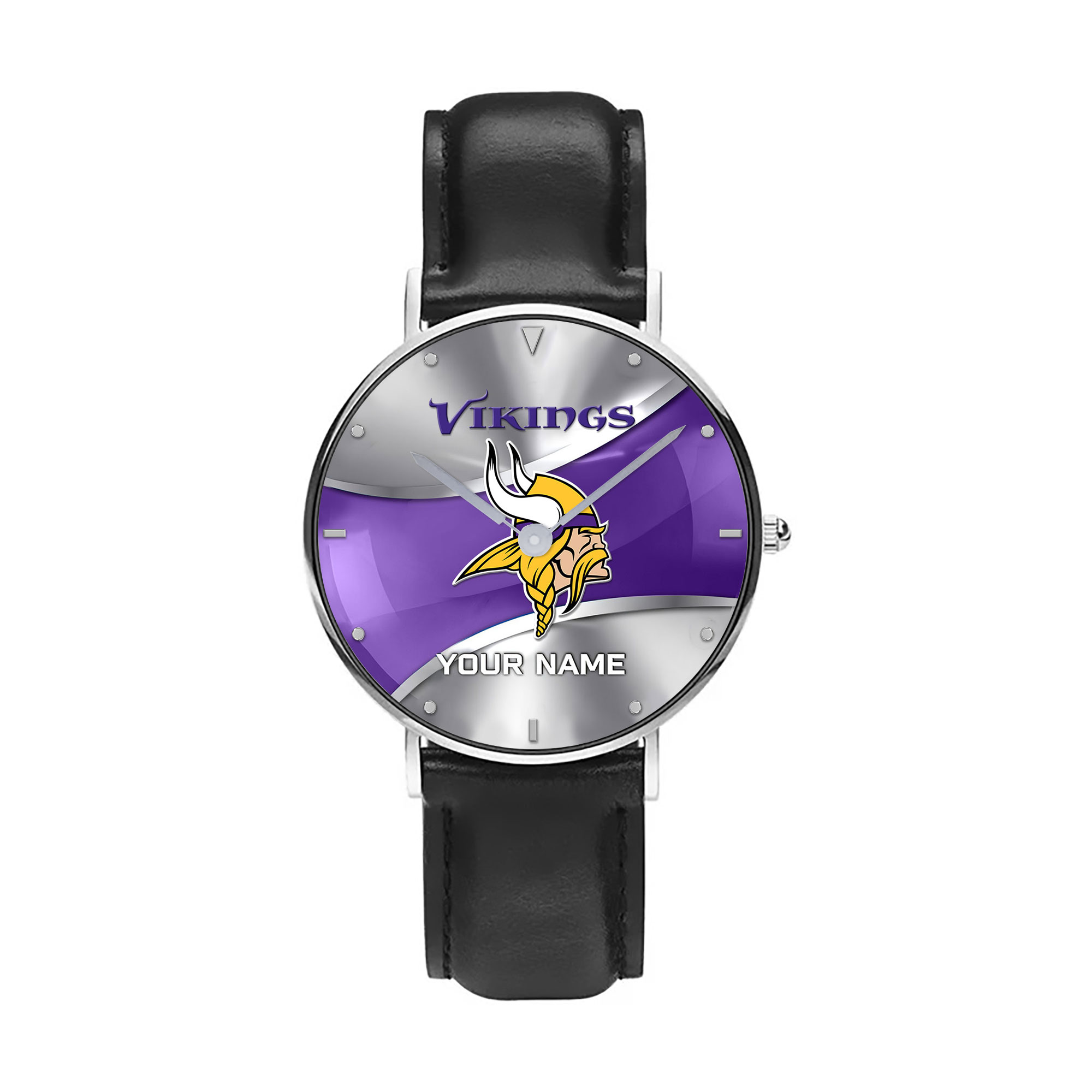 NFL Minnesota Vikings – Football Black Stitched Leather Watch – Custom Name