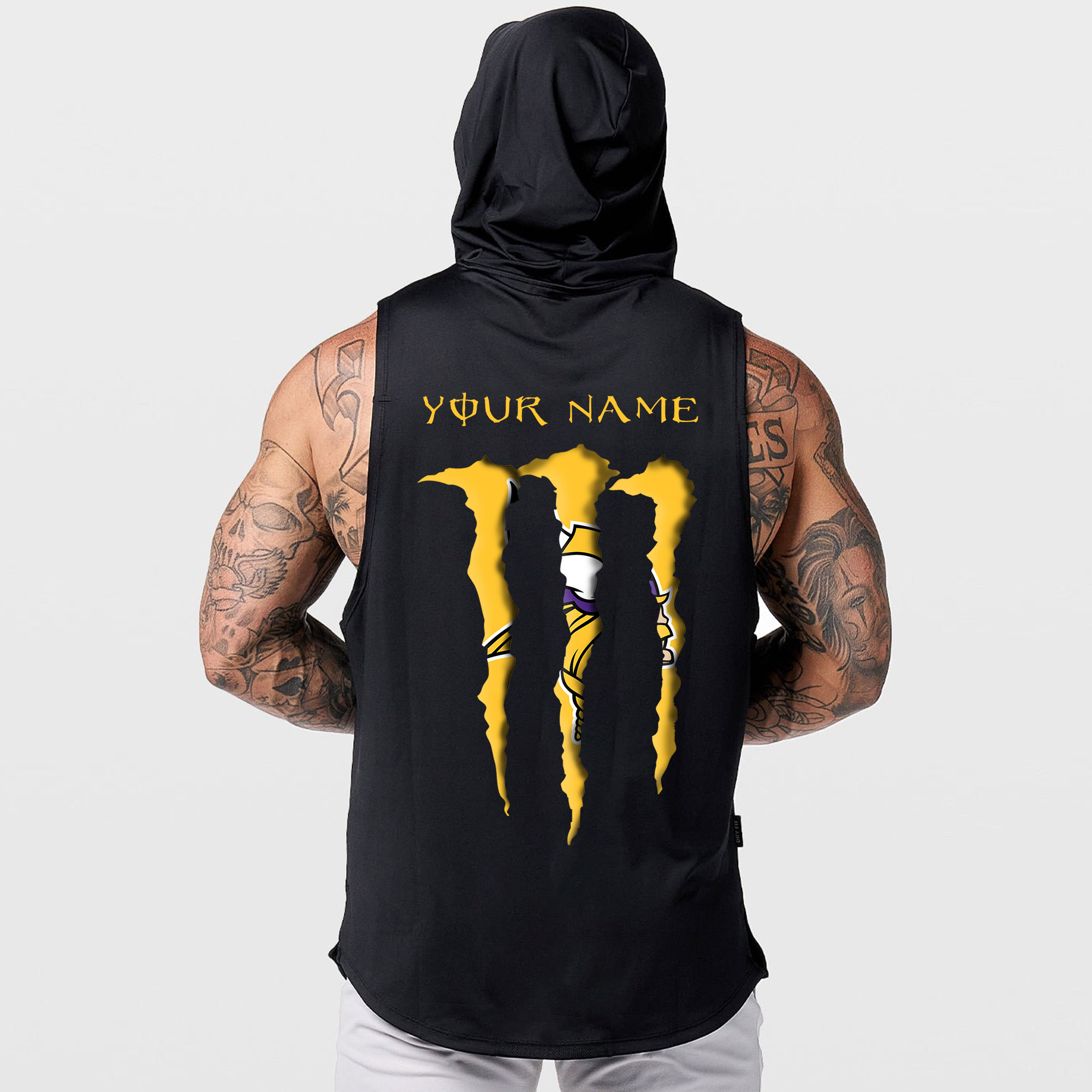 NFL Minnesota Vikings – Men’s Workout Hooded Tank Tops Bodybuilding Muscle Cut Off T Shirt Sleeveless – Custom Name