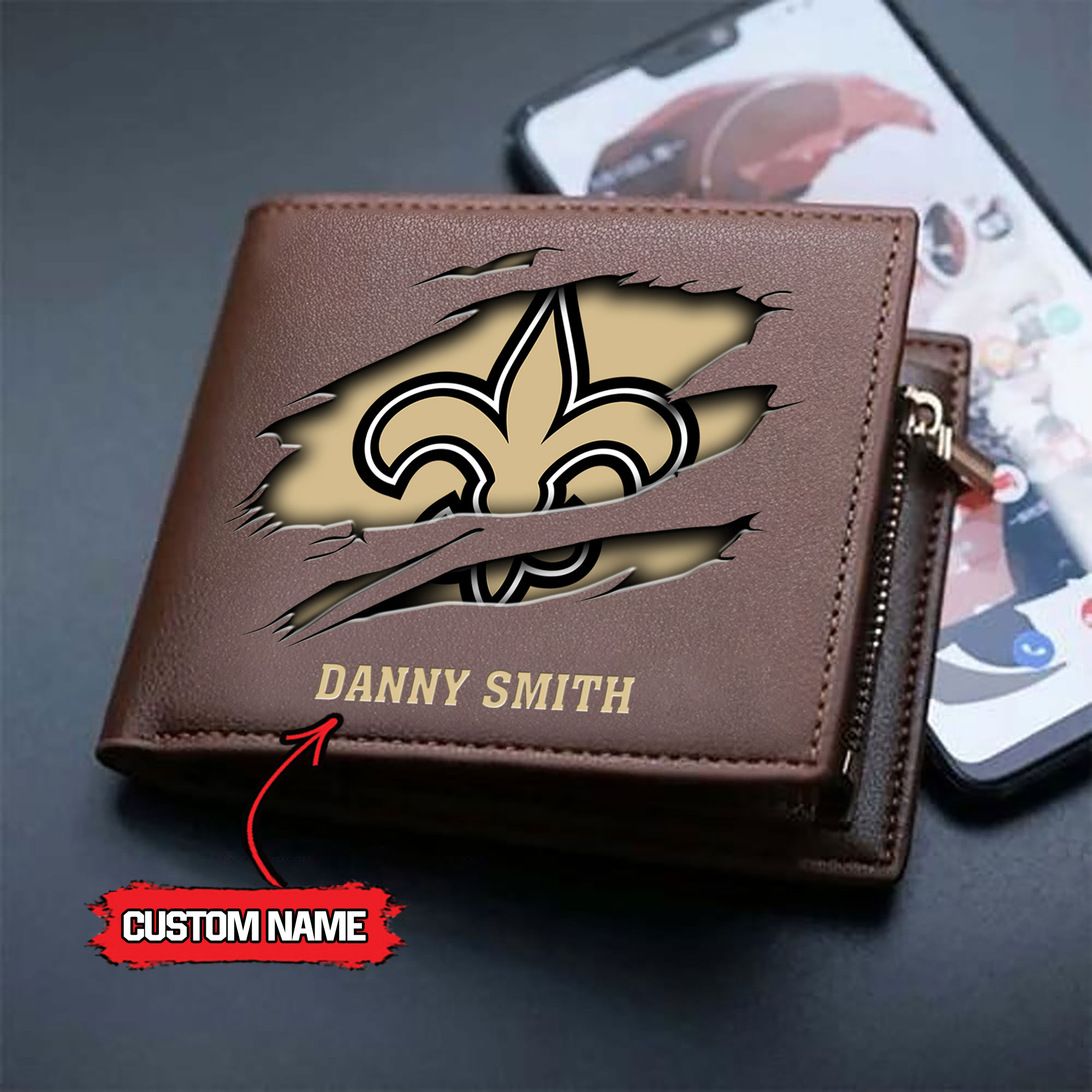 NFL New Orleans Saints – Men’s Leather Wallet – Custom Name