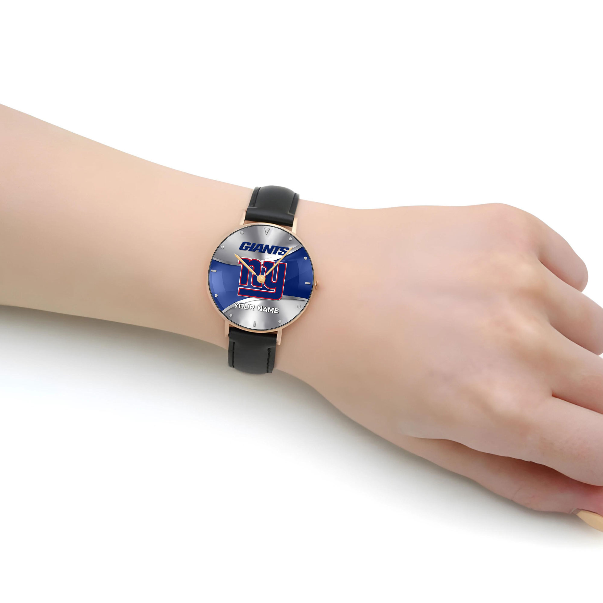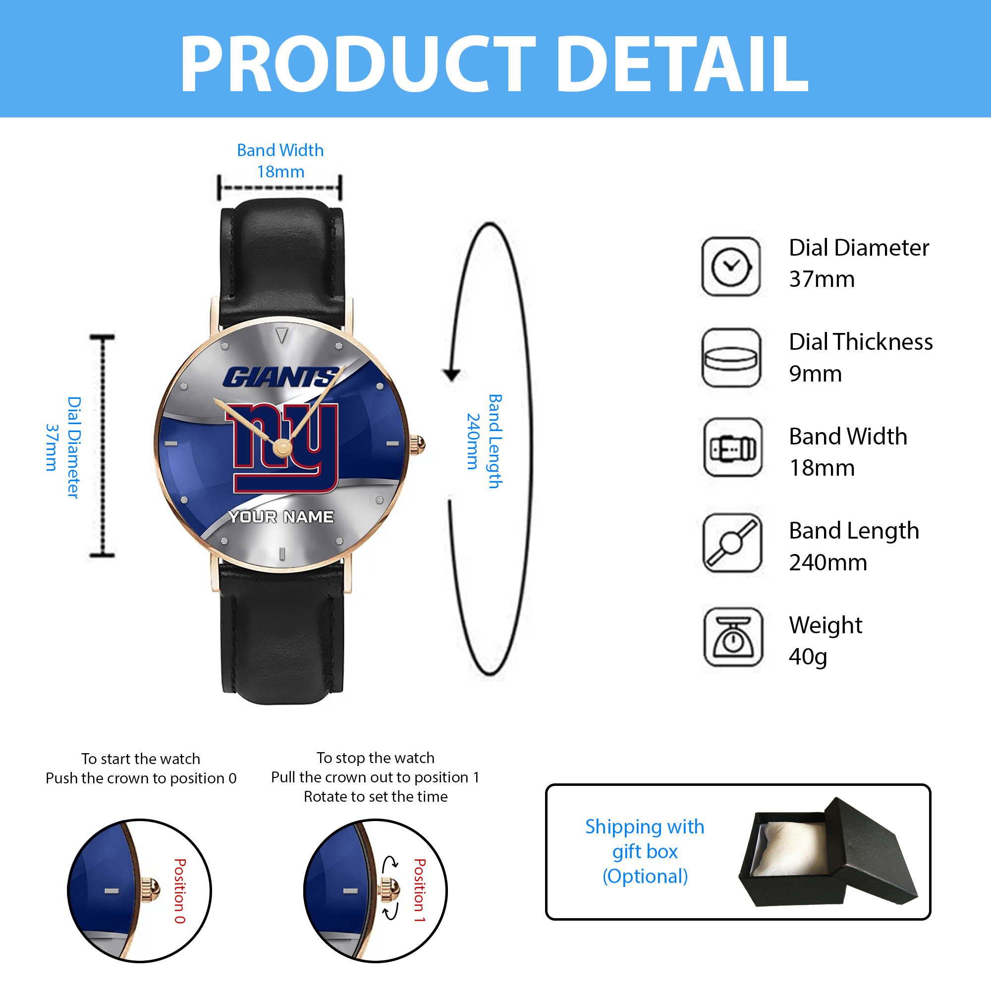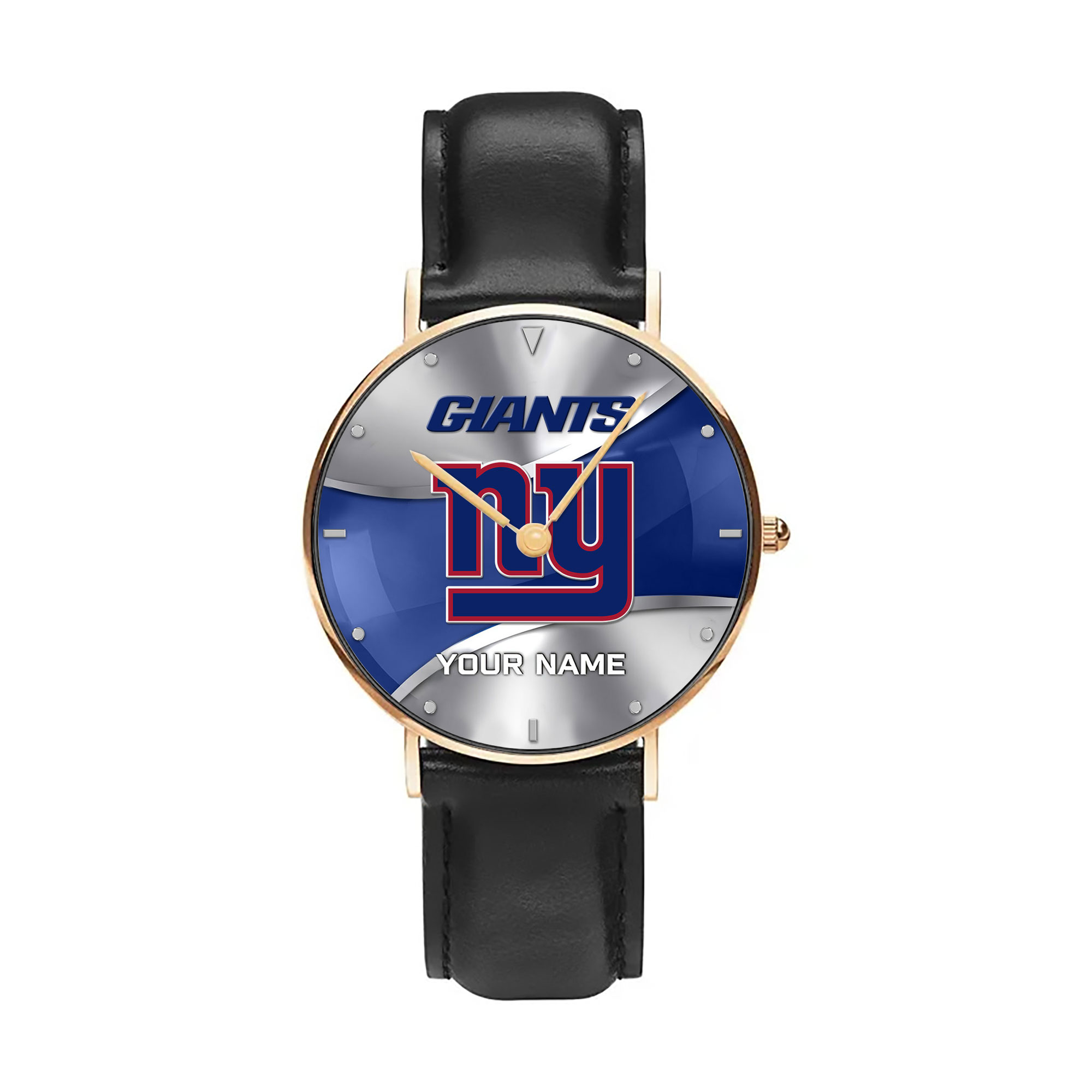 NFL New York Giants – Football Black Stitched Leather Watch – Custom Name