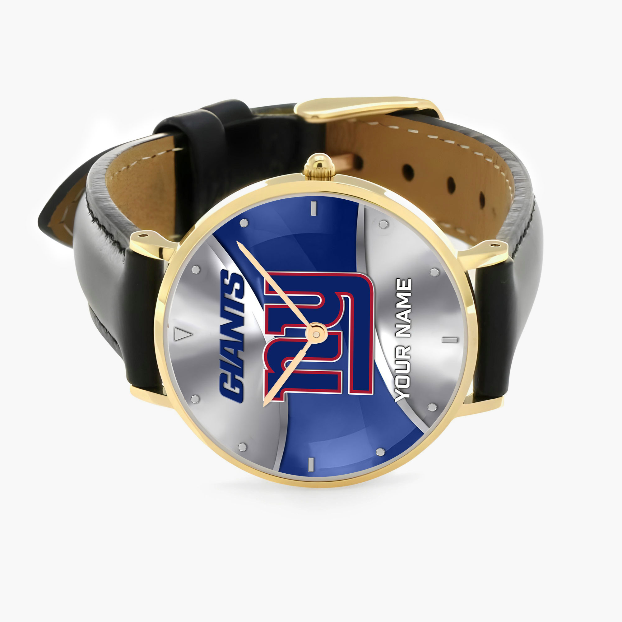 NFL New York Giants – Football Black Stitched Leather Watch – Custom Name