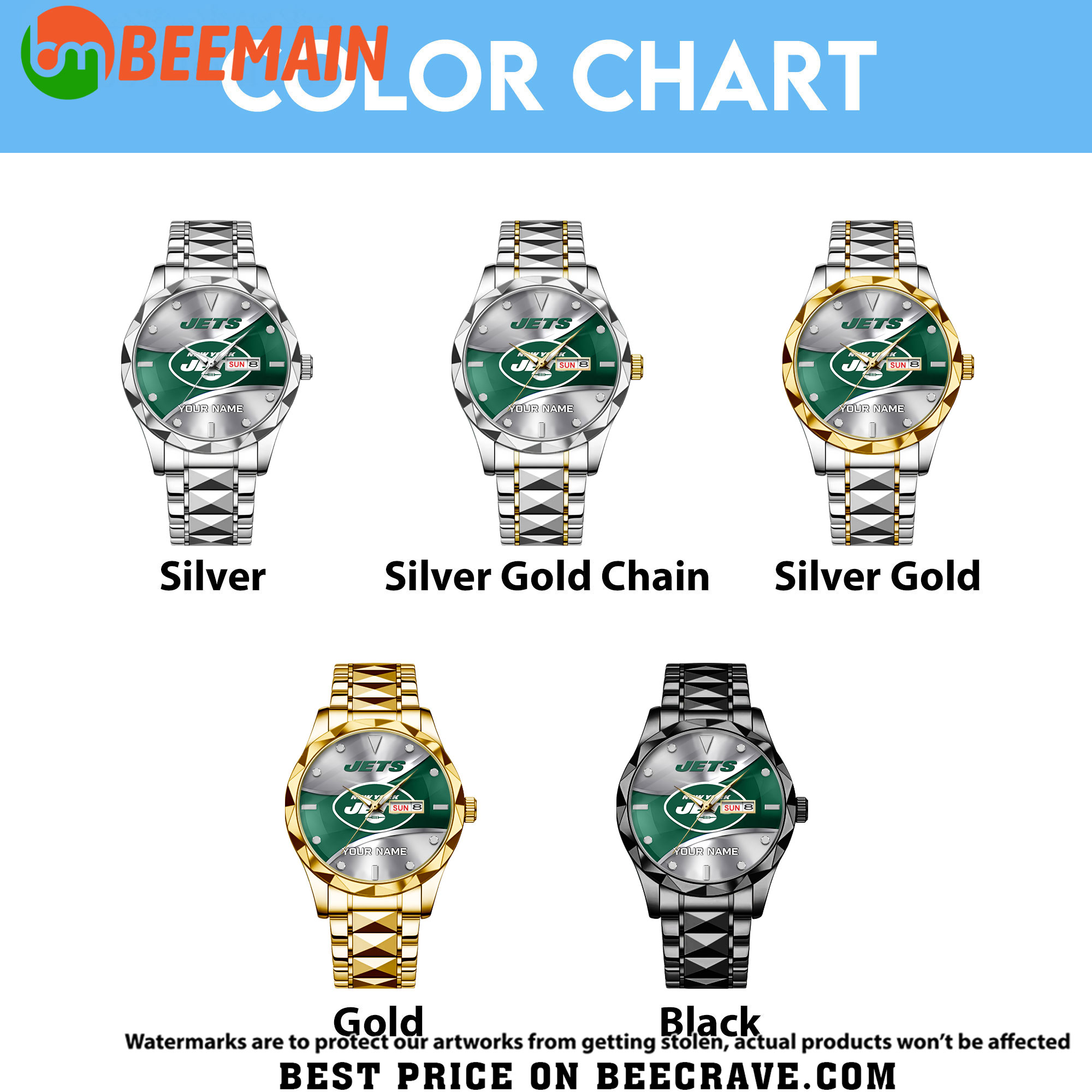 NFL New York Jets – Football Alloy Luxury Quartz Watch – Custom Name