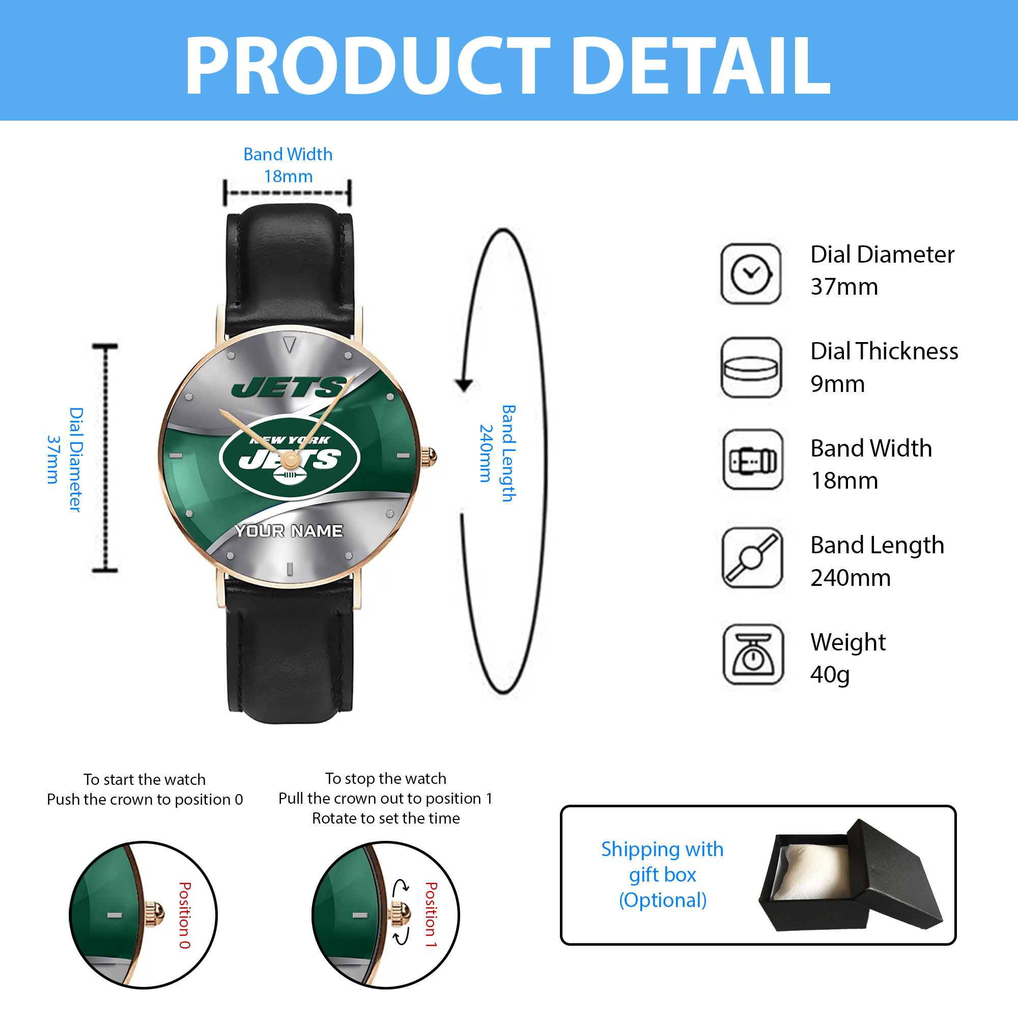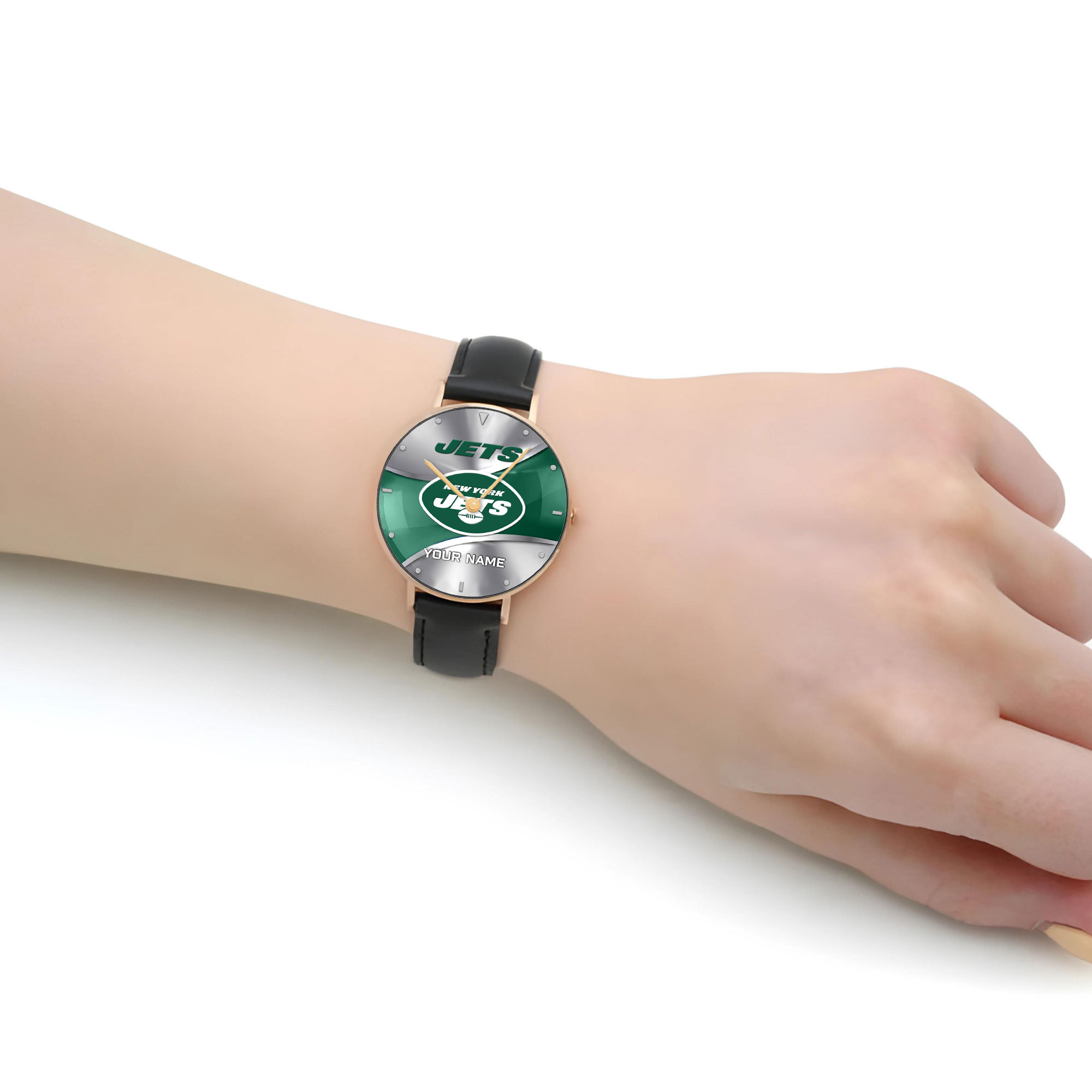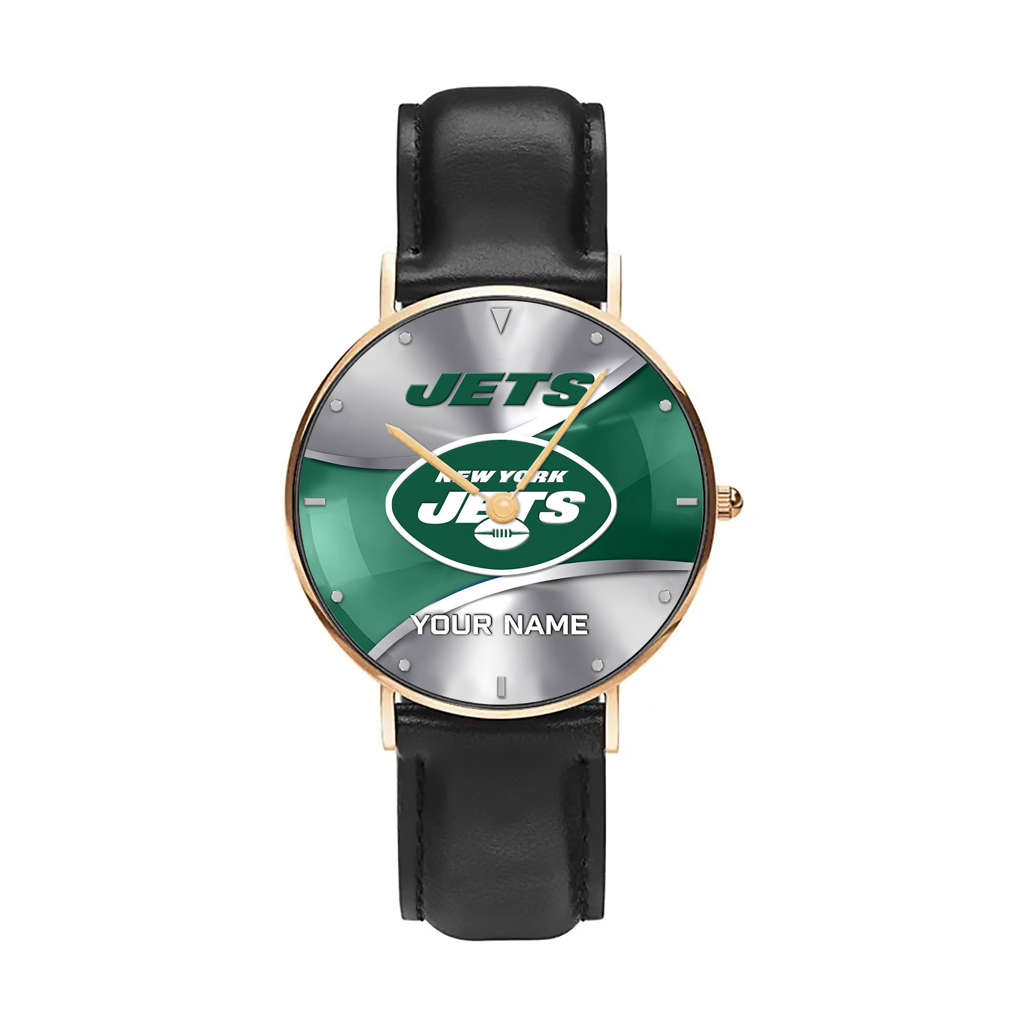 NFL New York Jets – Football Black Stitched Leather Watch – Custom Name