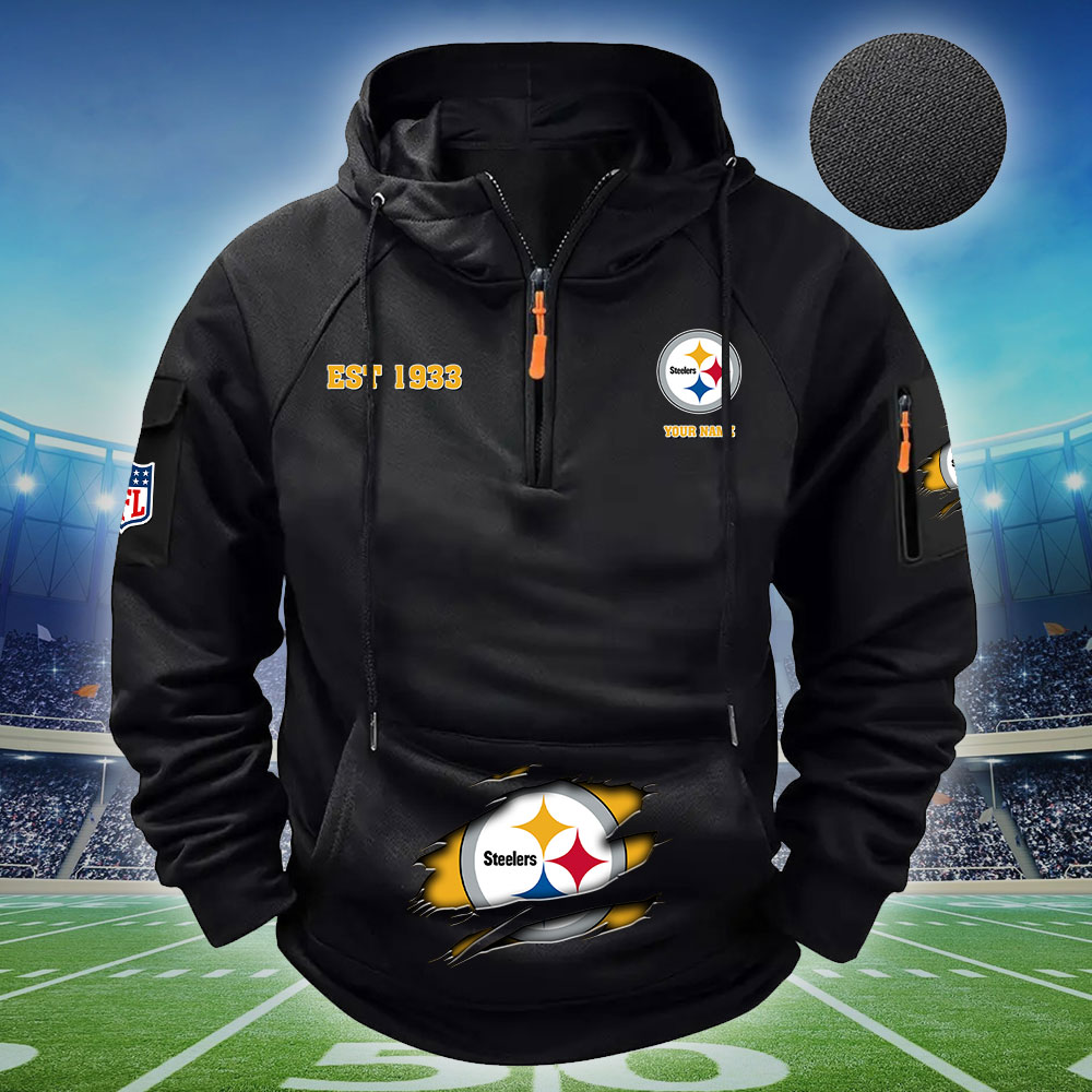 NFL Pittsburgh Steelers – Football Men’s Zip-Up Hoodie – Custom Name