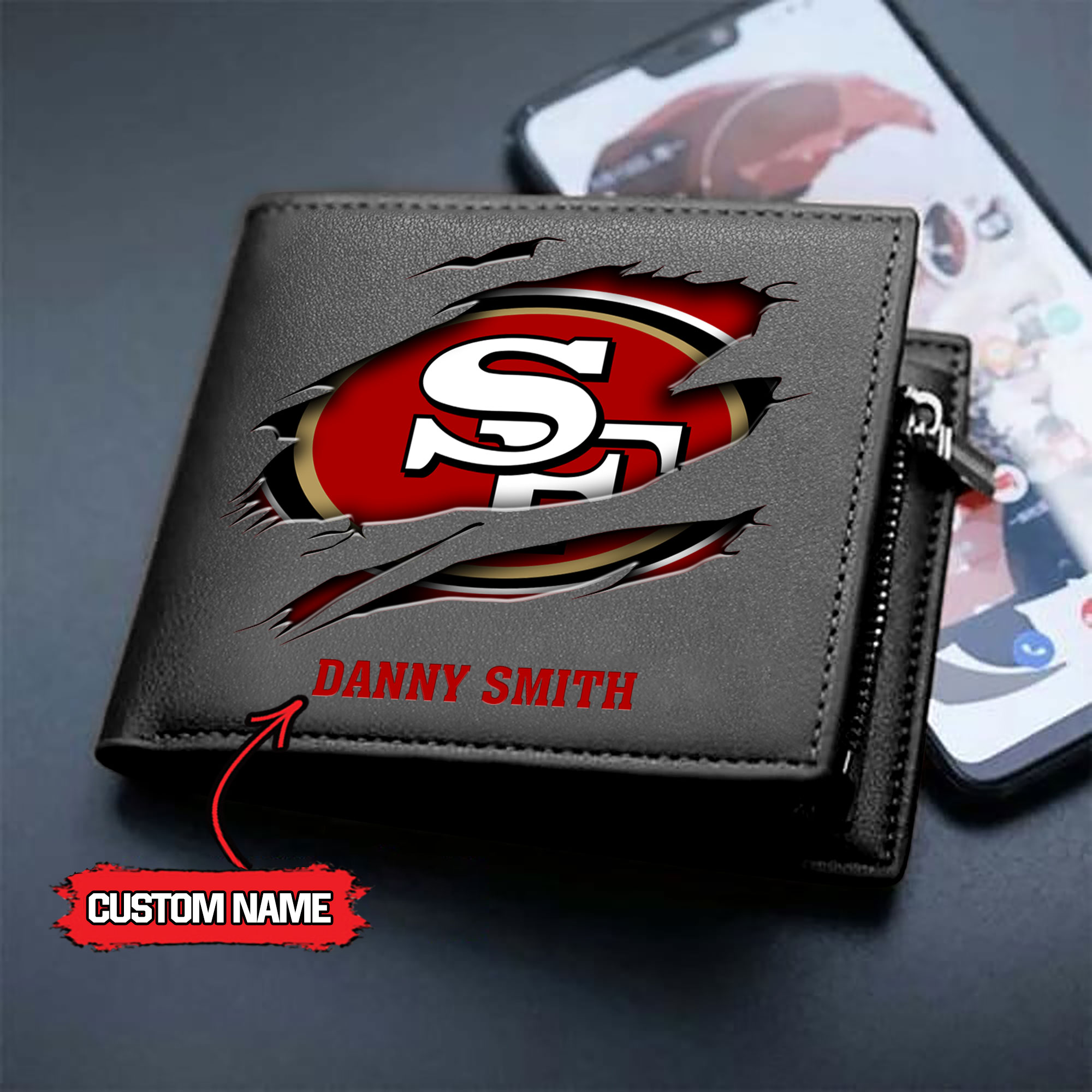 NFL San Francisco 49ers – Men’s Leather Wallet – Custom Name