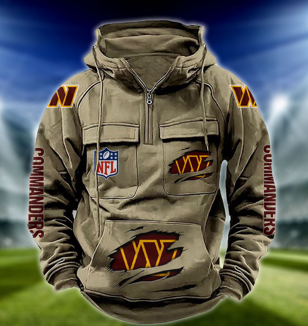 NFL Washington Commanders – Football Men’s Zip-Up Hoodie – Custom Name