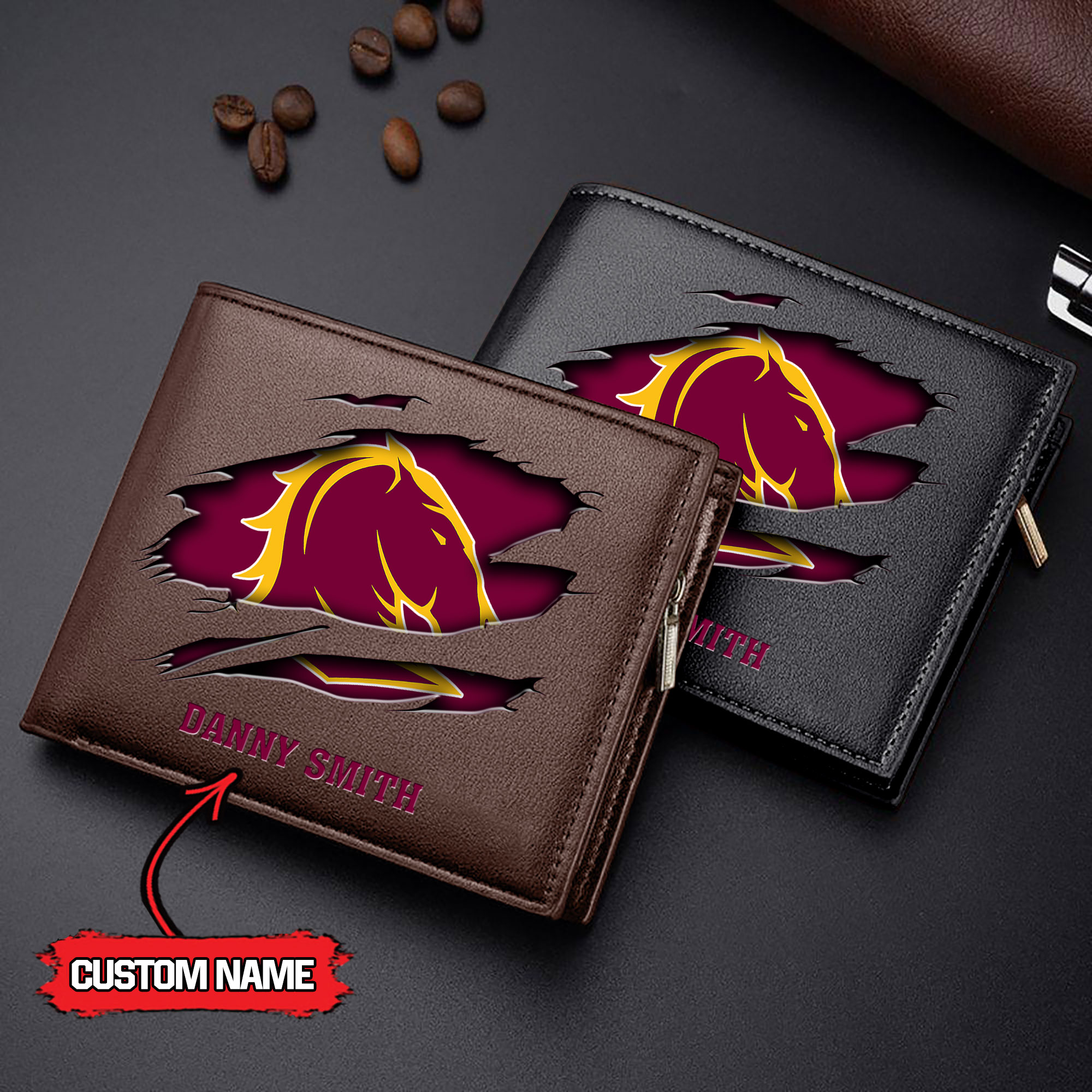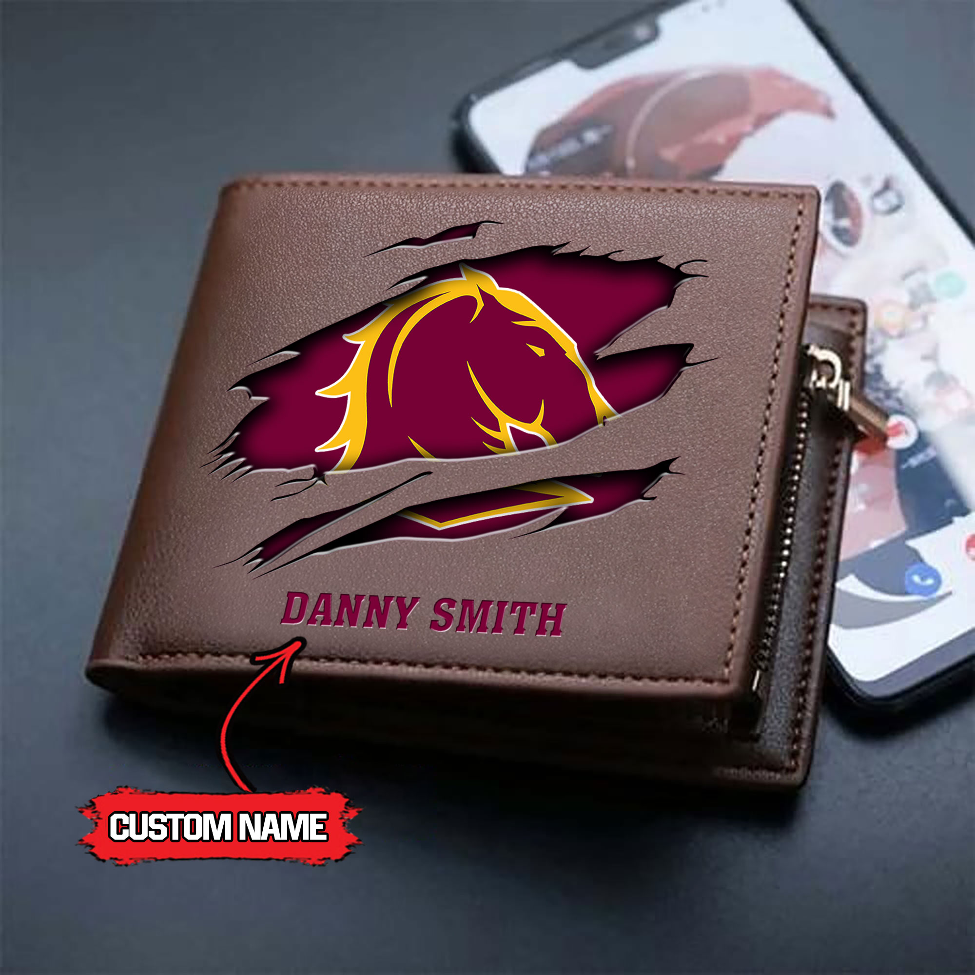 NRL 01 Brisbane Broncos – Men’s Leather Wallet – Custom Name