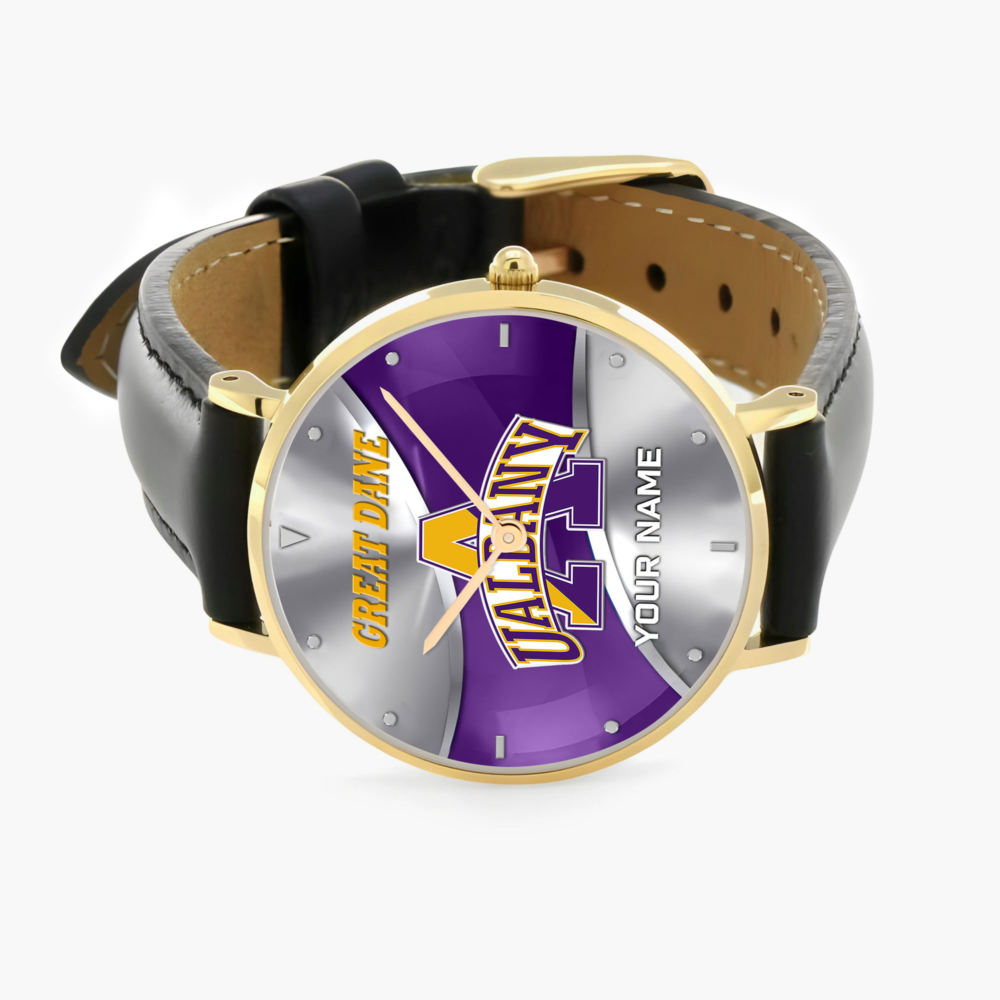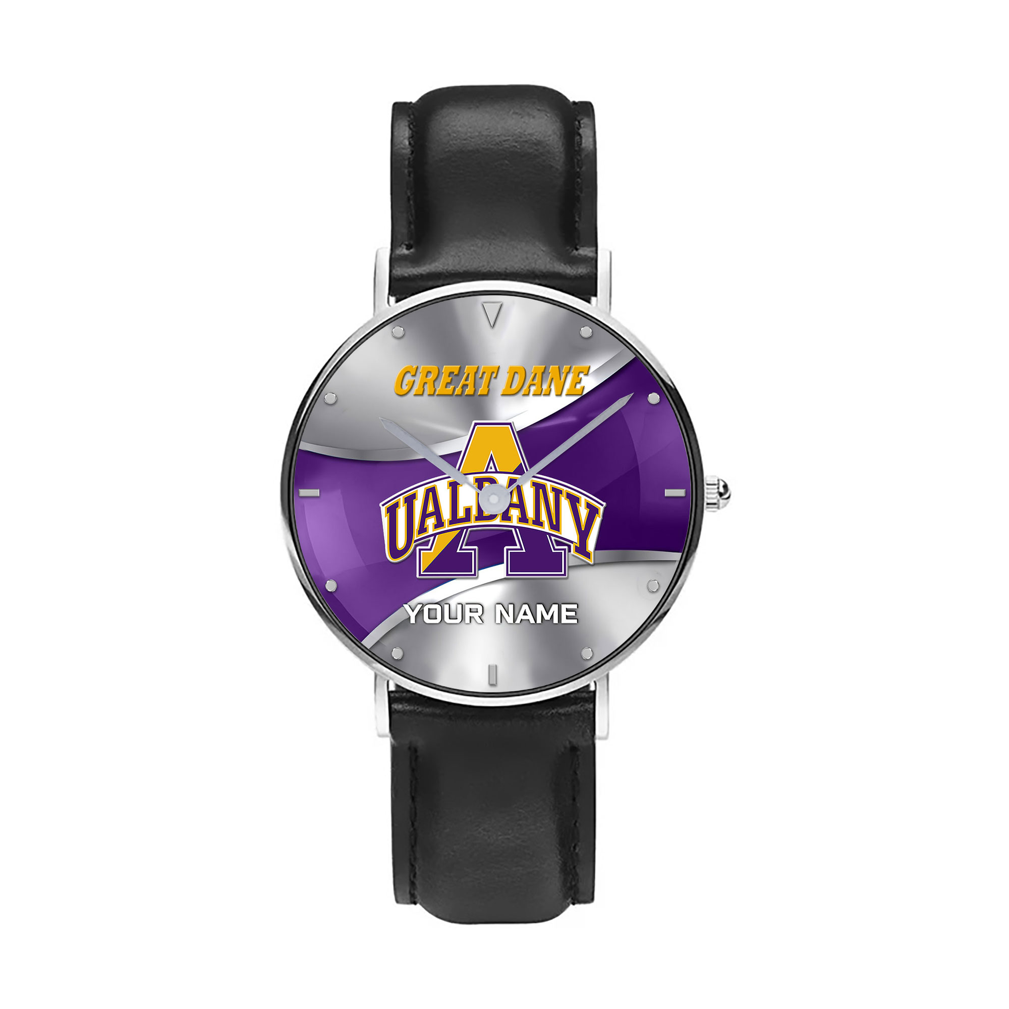 NCAA Albany Great Danes – Football Black Stitched Leather Watch – Custom Name