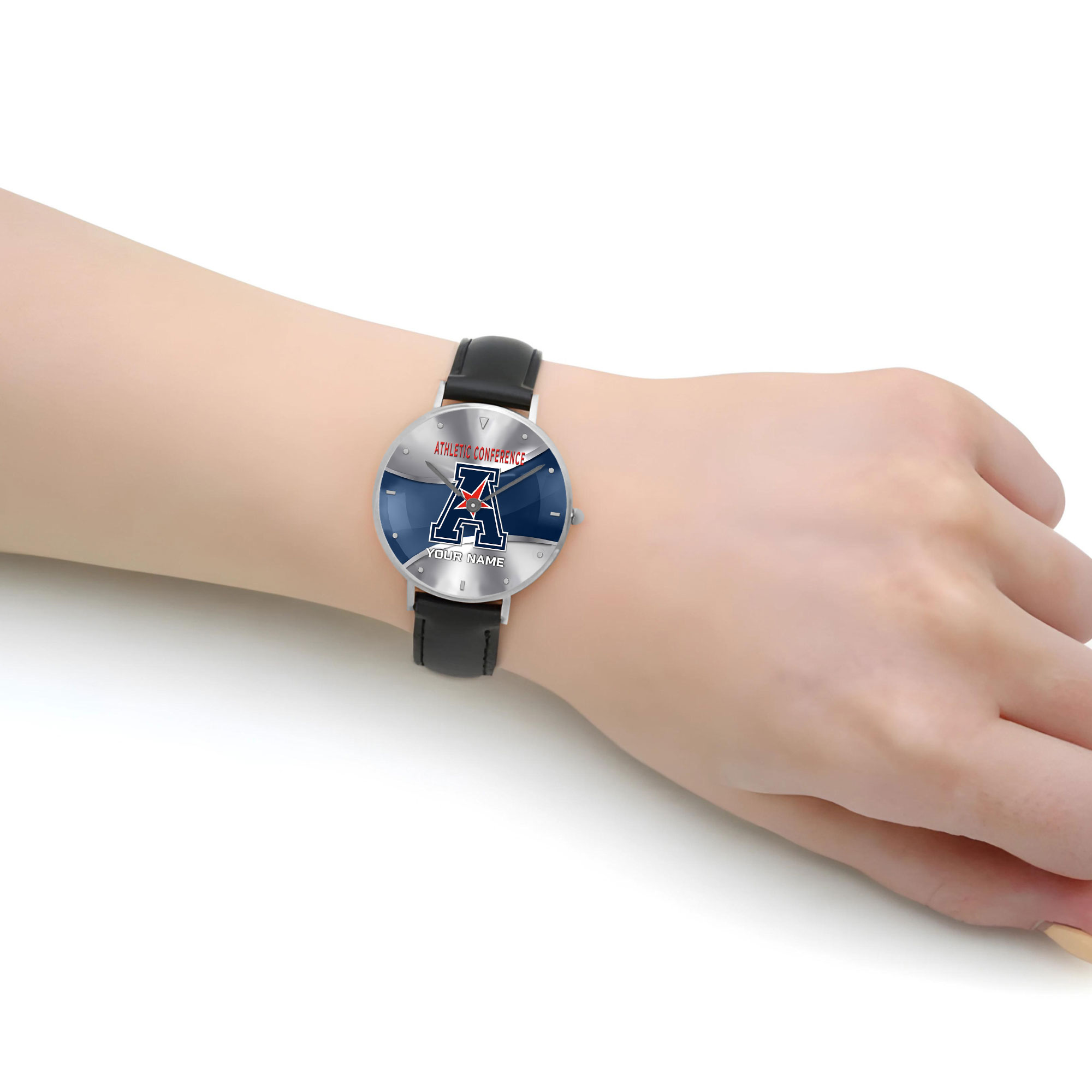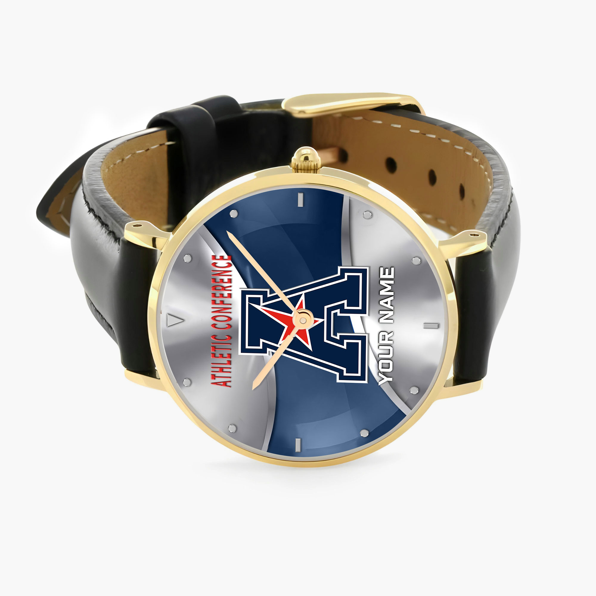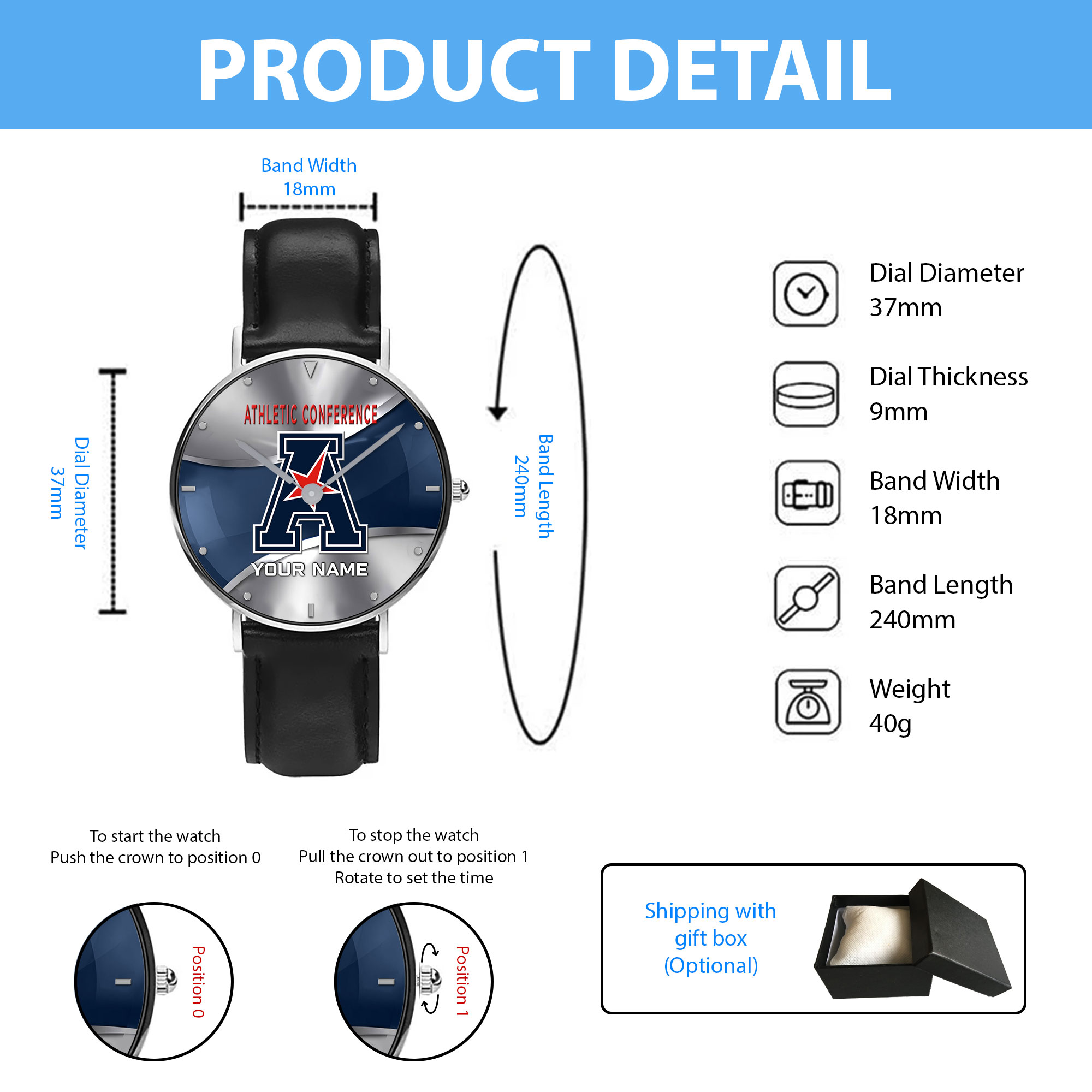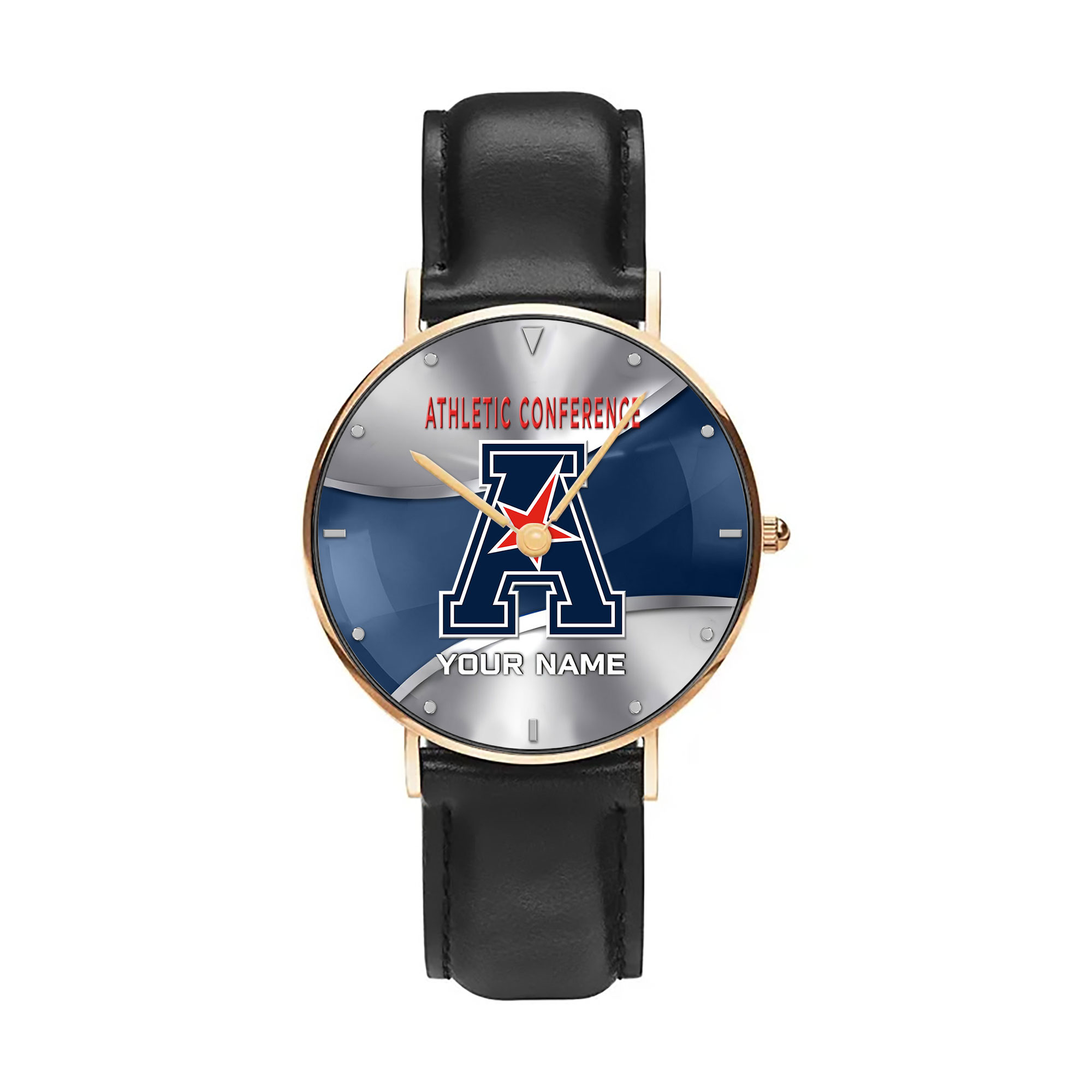ZNCAA American Athletic Conference – Football Black Stitched Leather Watch – Custom Name
