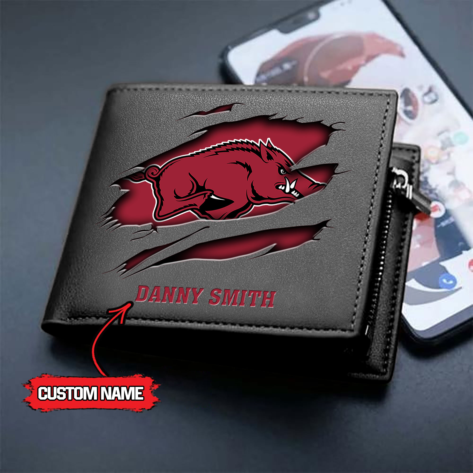ZNCAA Arkansas Razorbacks – Men’s Leather Wallet – Custom Name