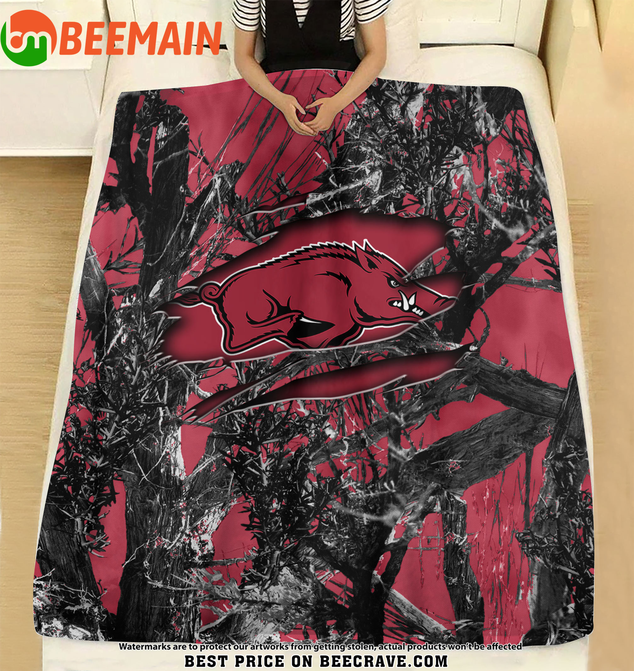 NCAA Arkansas Razorbacks – Football Camo Blanket – Custom Name