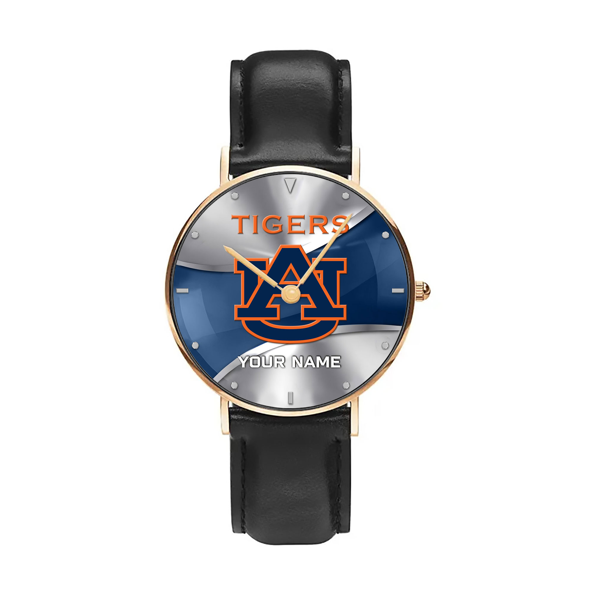 ZNCAA Auburn Tigers – Football Black Stitched Leather Watch – Custom Name