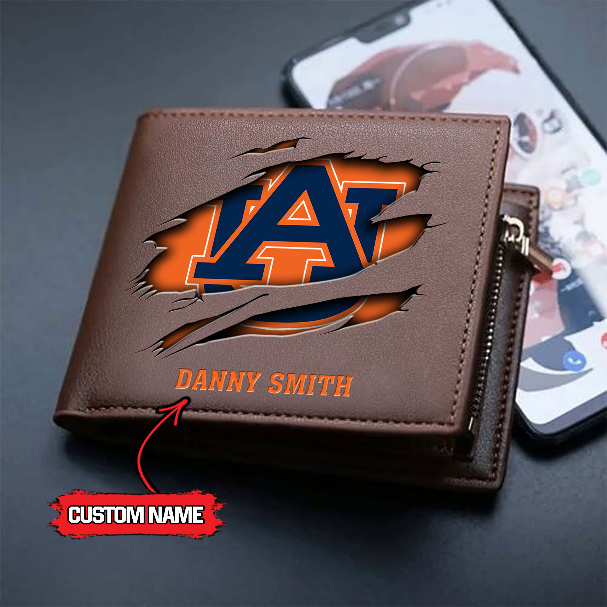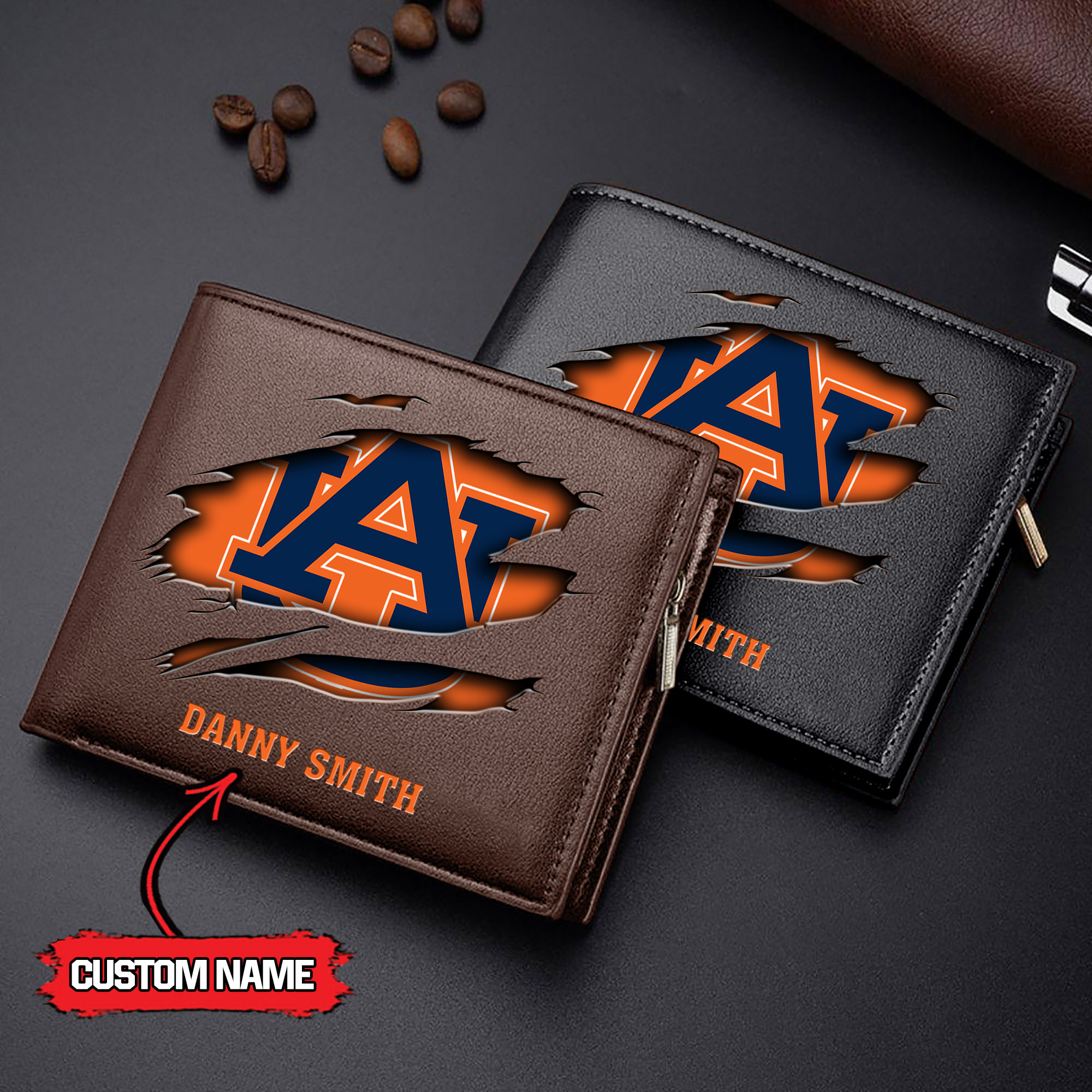 ZNCAA Auburn Tigers – Men’s Leather Wallet – Custom Name