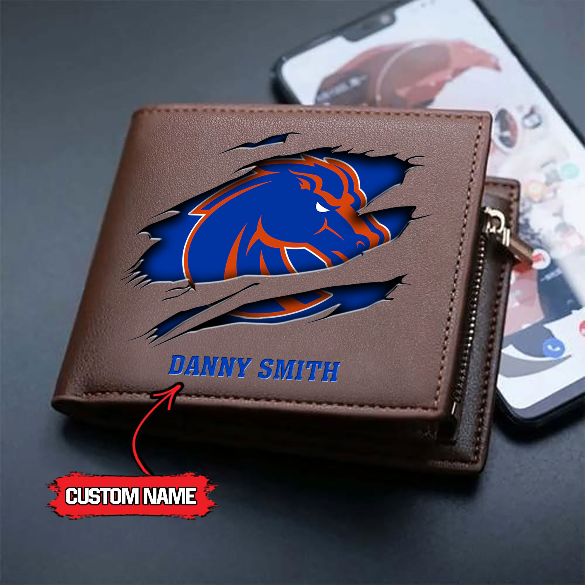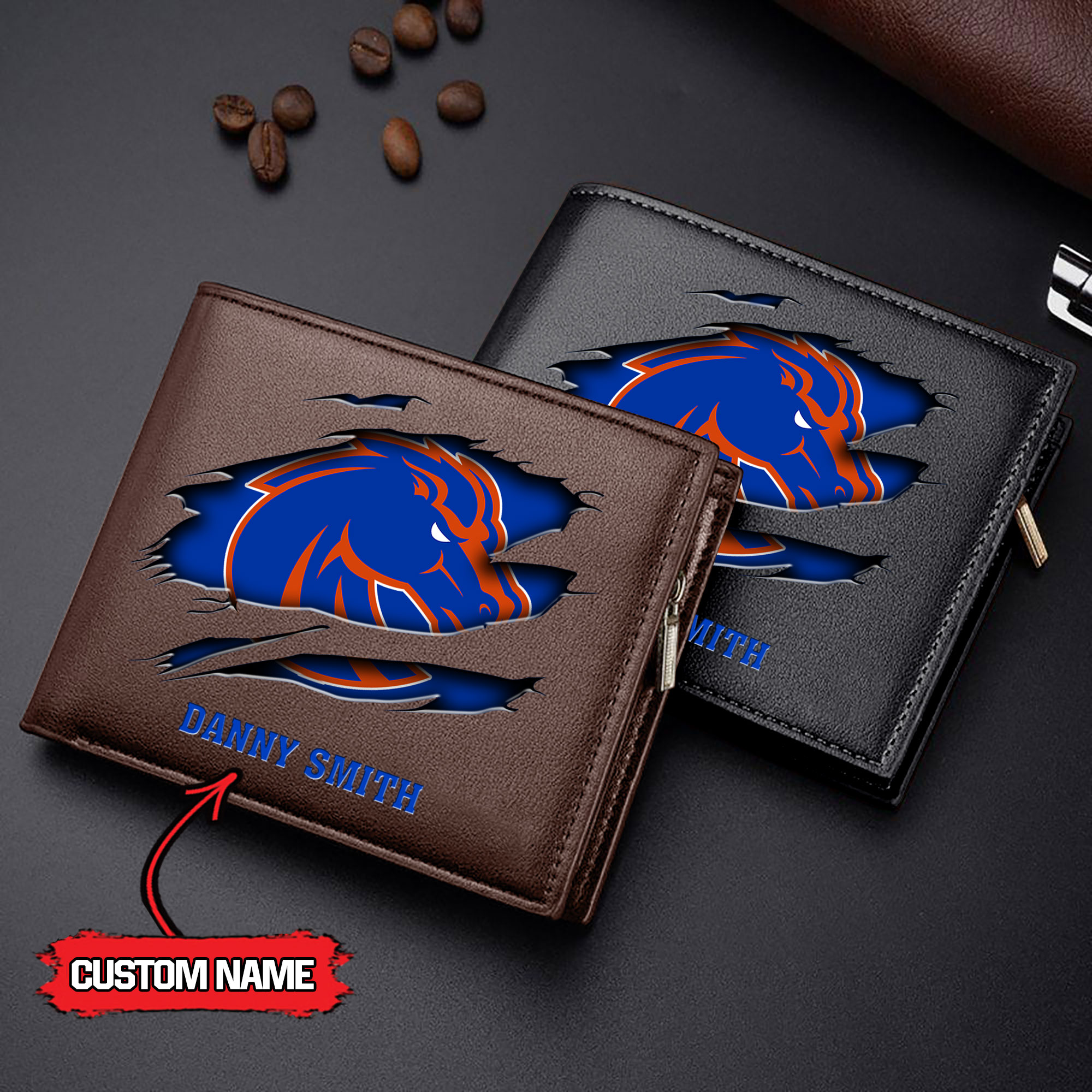 ZNCAA Boise State Broncos – Men’s Leather Wallet – Custom Name