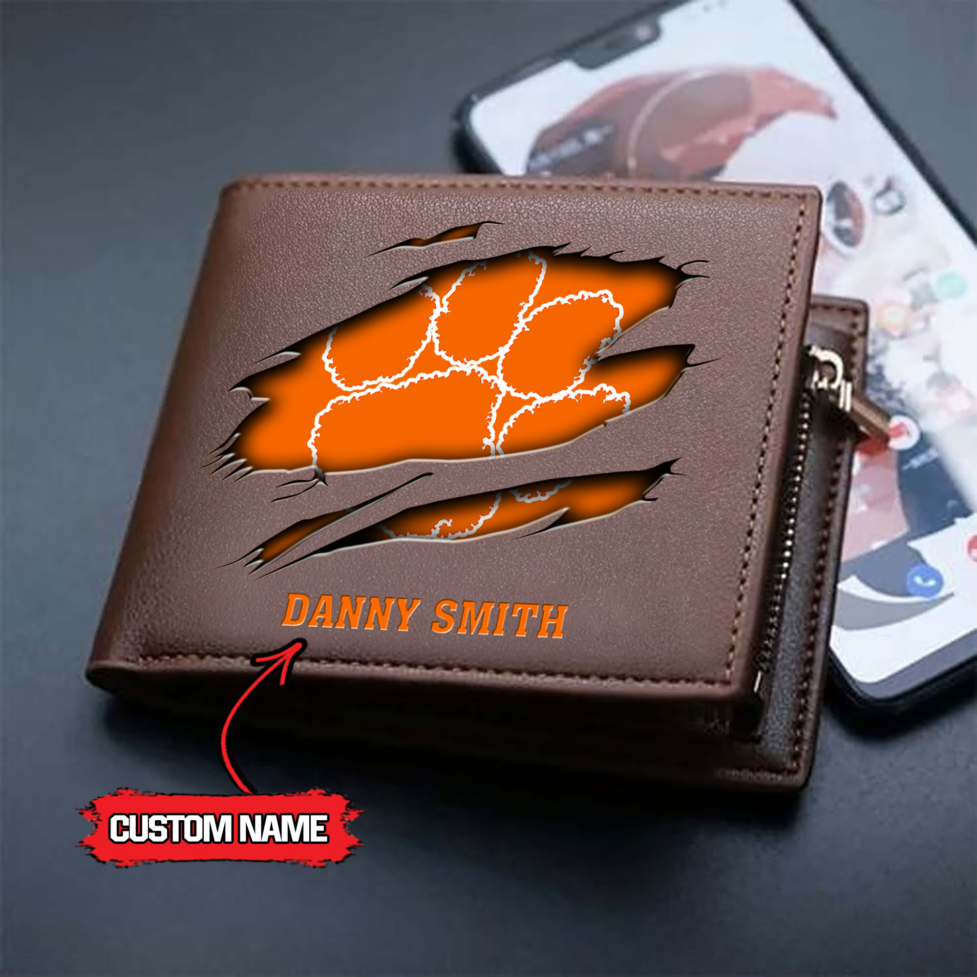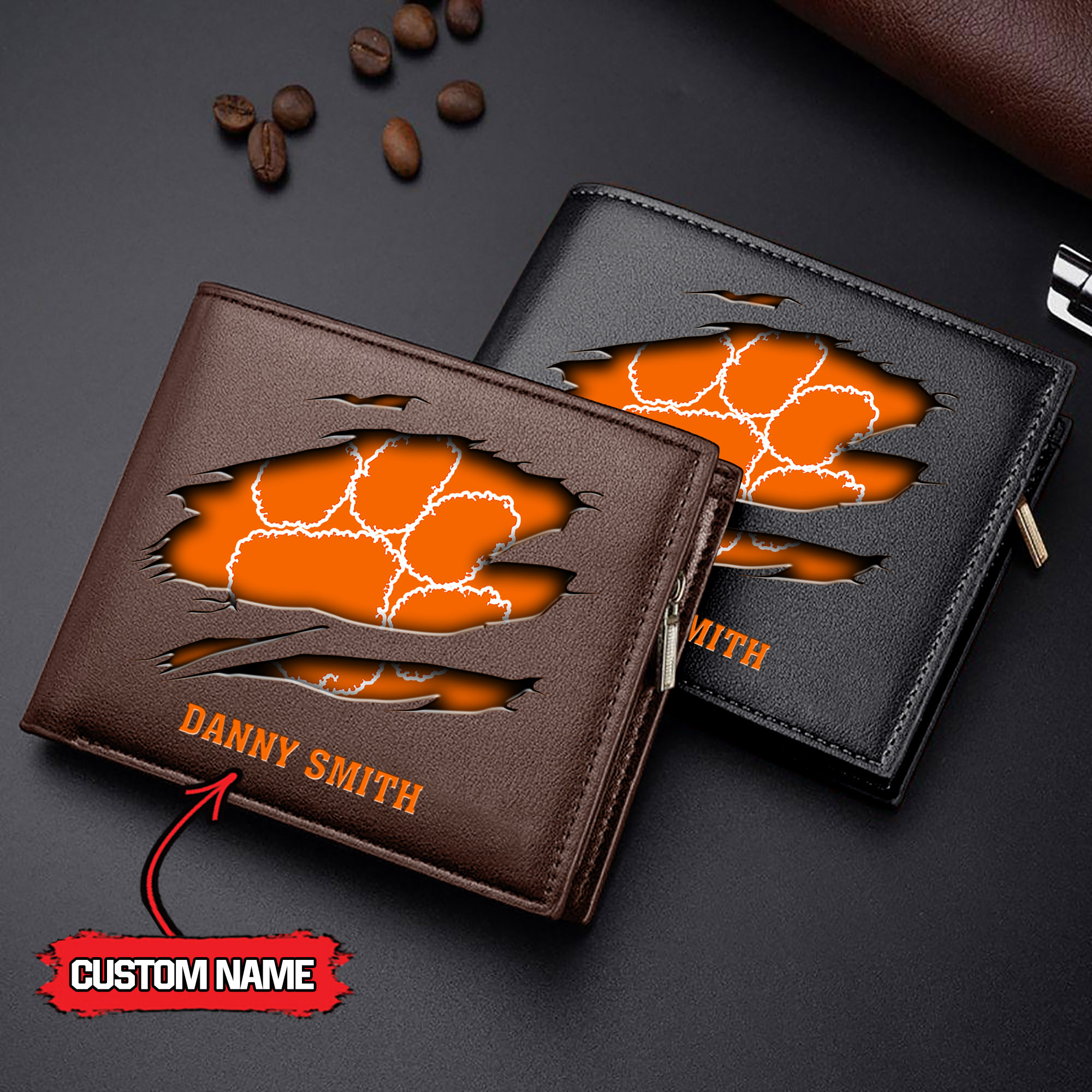 ZNCAA Clemson Tigers – Men’s Leather Wallet – Custom Name