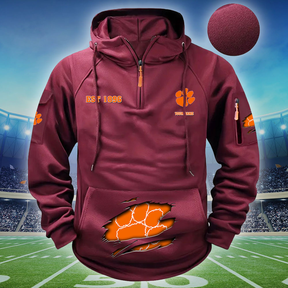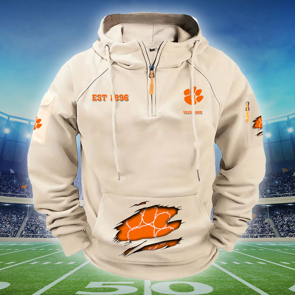 ZNCAA Clemson Tigers – Football Men’s Zip-Up Hoodie – Custom Name