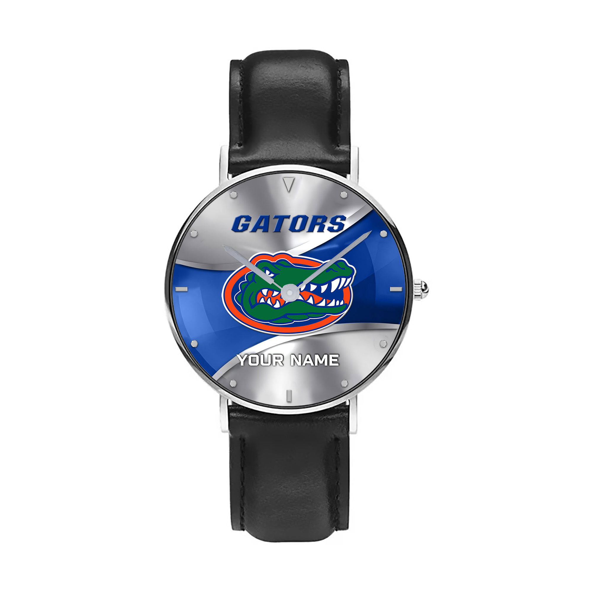 ZNCAA Florida Gators – Football Black Stitched Leather Watch – Custom Name