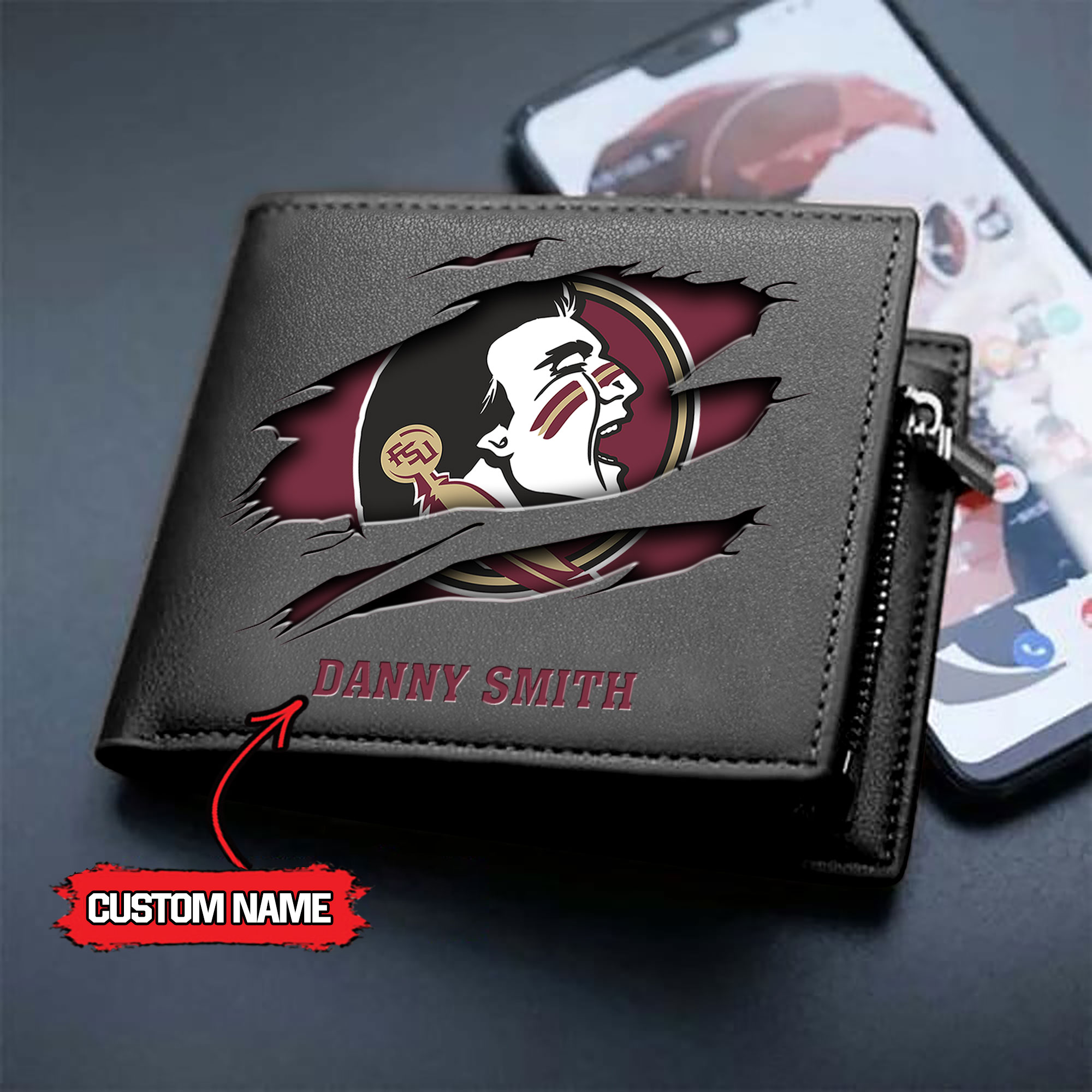 ZNCAA Florida State Seminoles – Men’s Leather Wallet – Custom Name