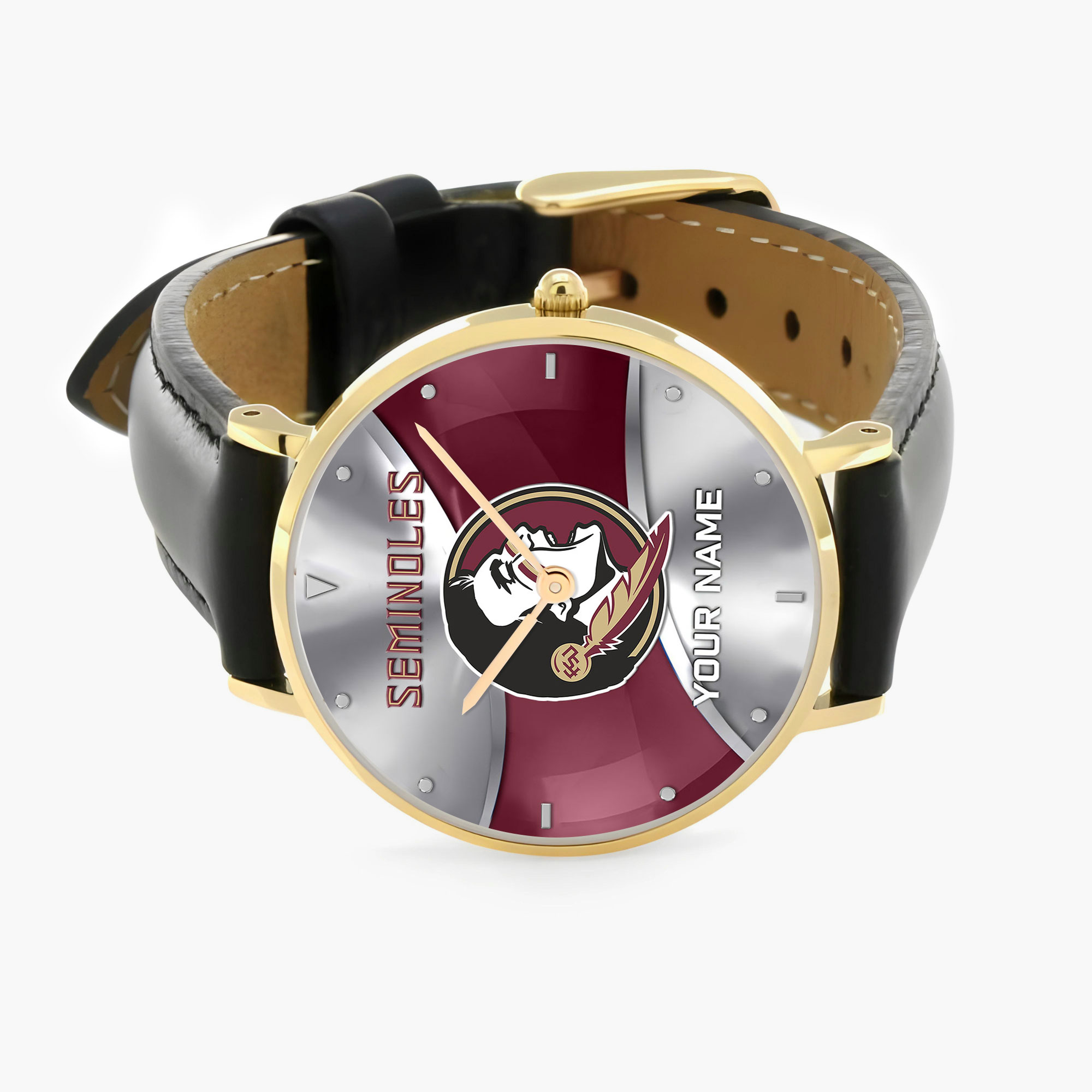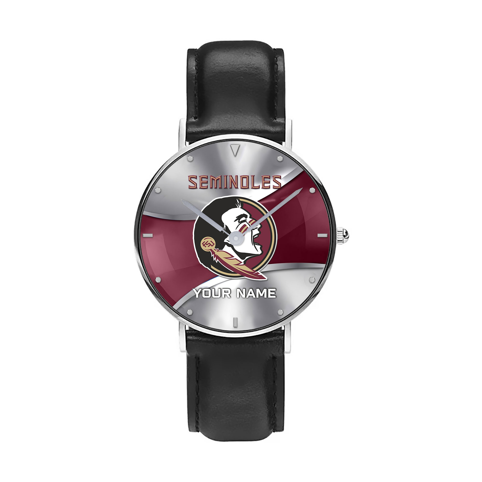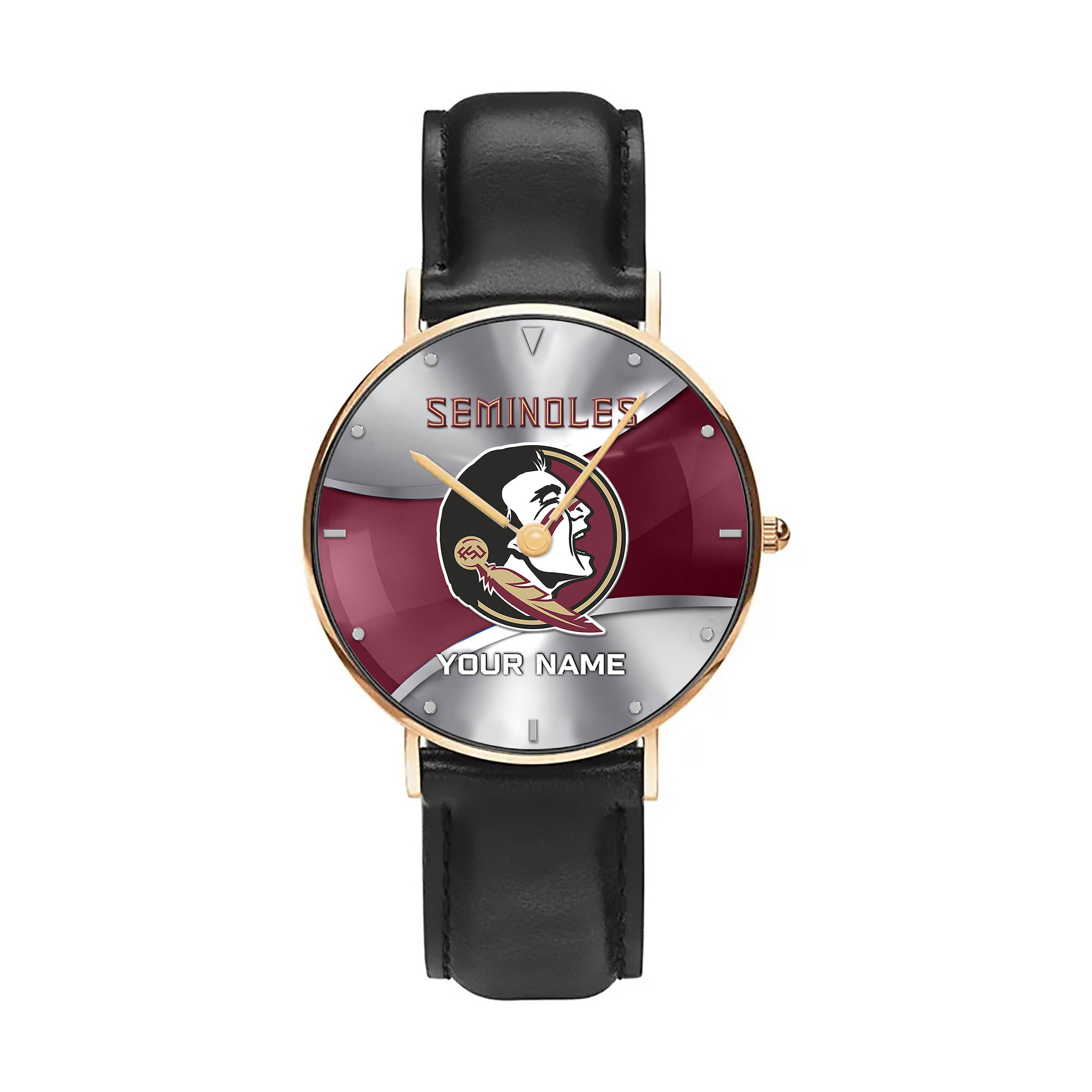 ZNCAA Florida State Seminoles – Football Black Stitched Leather Watch – Custom Name
