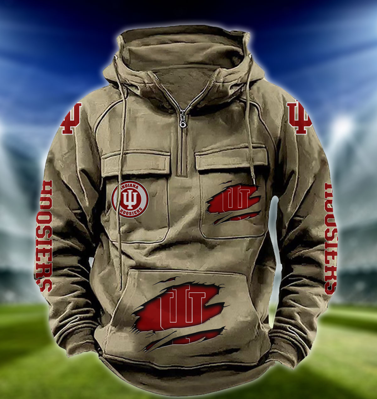ZNCAA Indiana Hoosiers – Football Men’s Zip-Up Hoodie – Custom Name