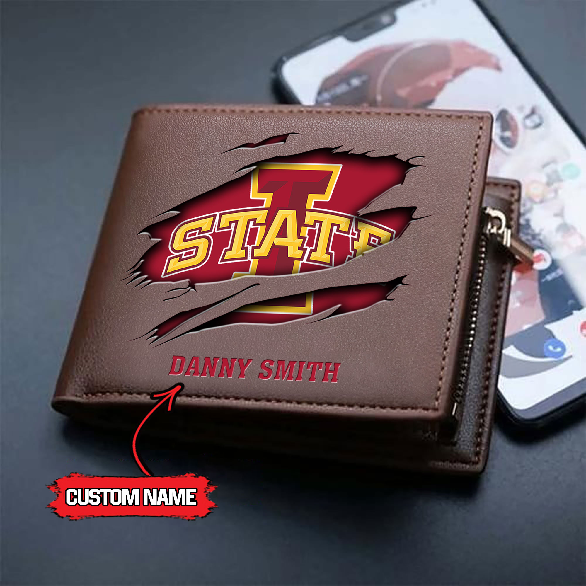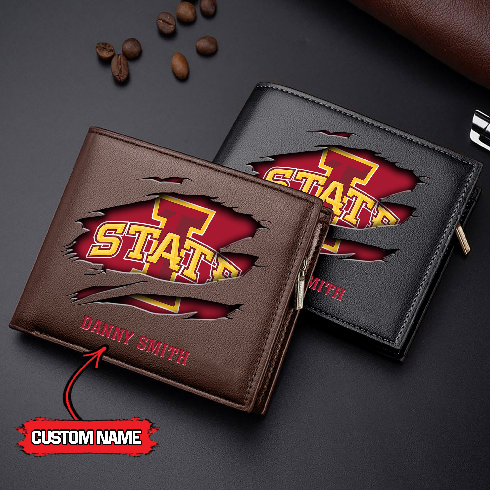 ZNCAA Iowa State Cyclones – Men’s Leather Wallet – Custom Name