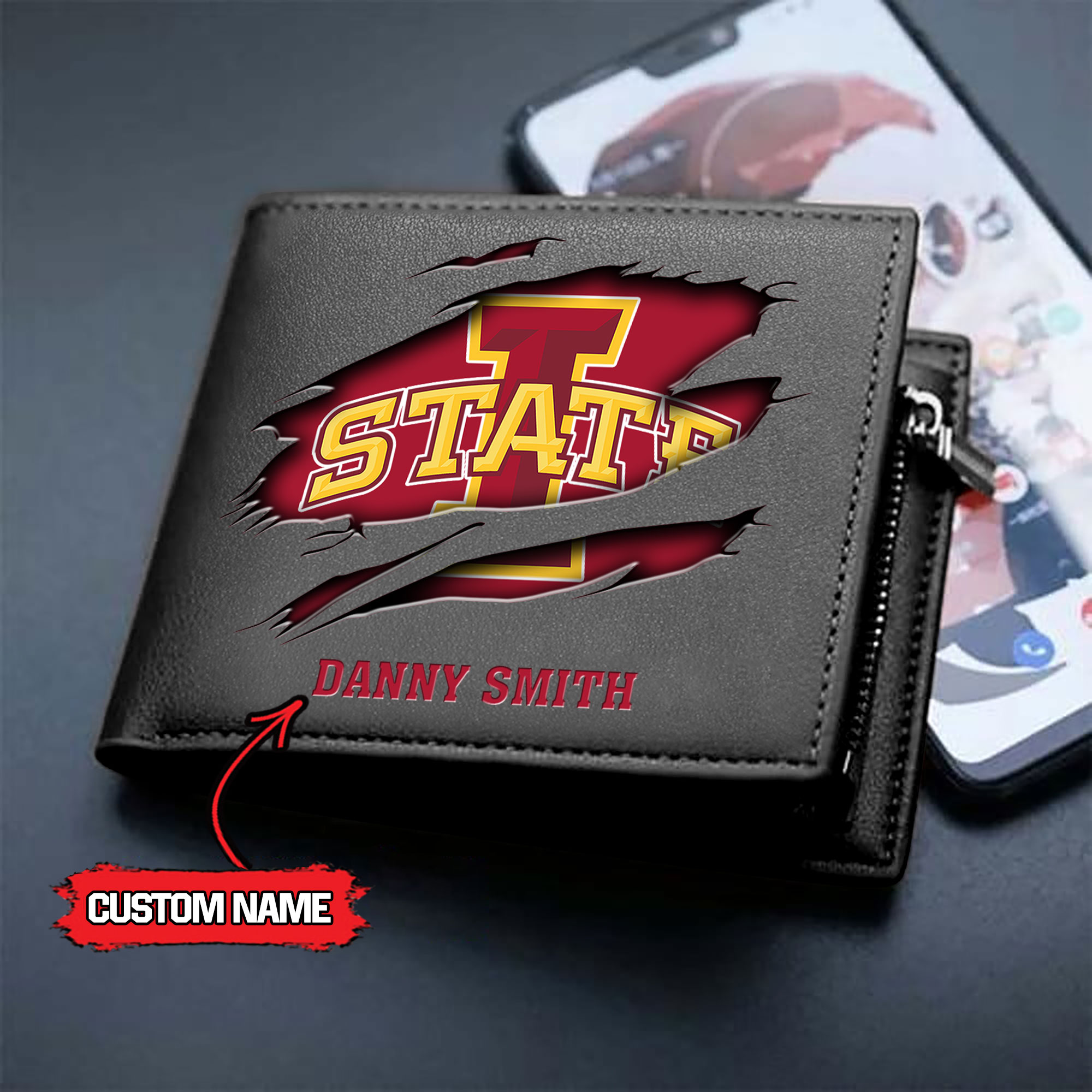 ZNCAA Iowa State Cyclones – Men’s Leather Wallet – Custom Name
