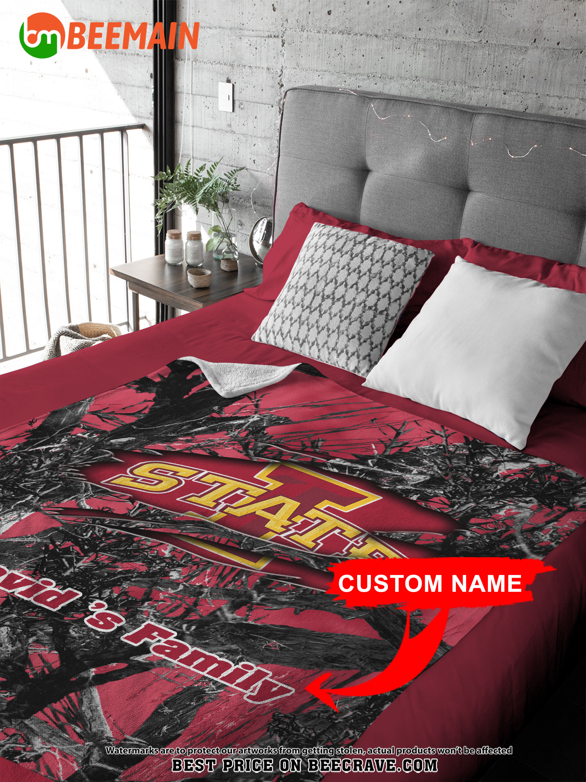 ZNCAA Iowa State Cyclones – Football Camo Blanket – Custom Name