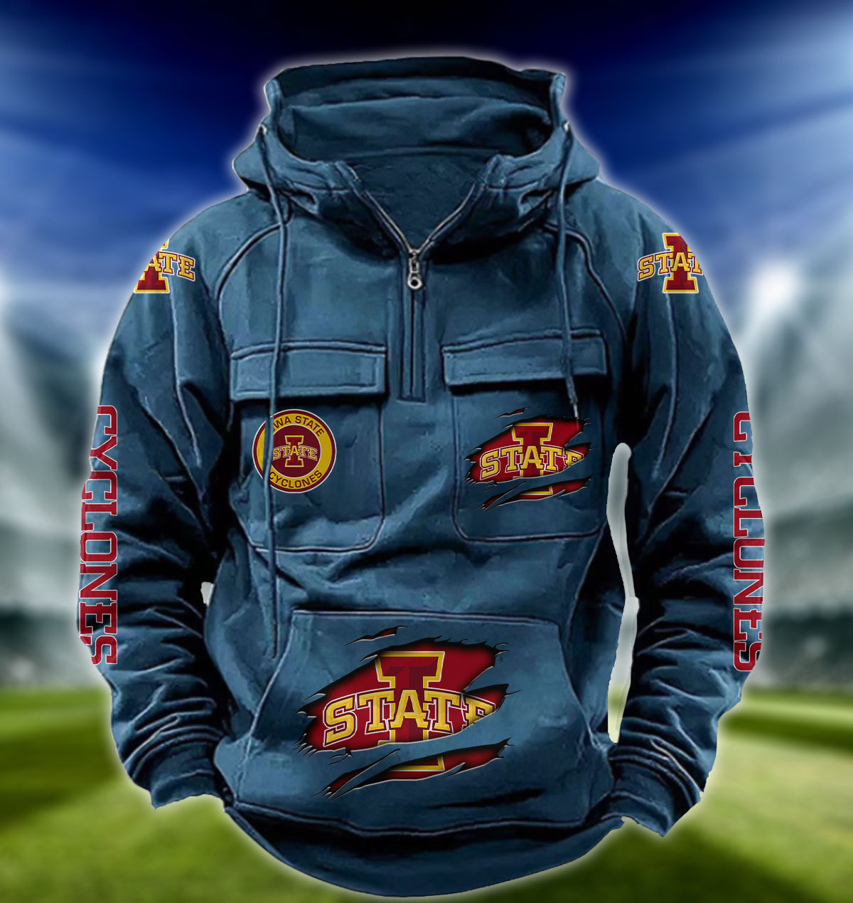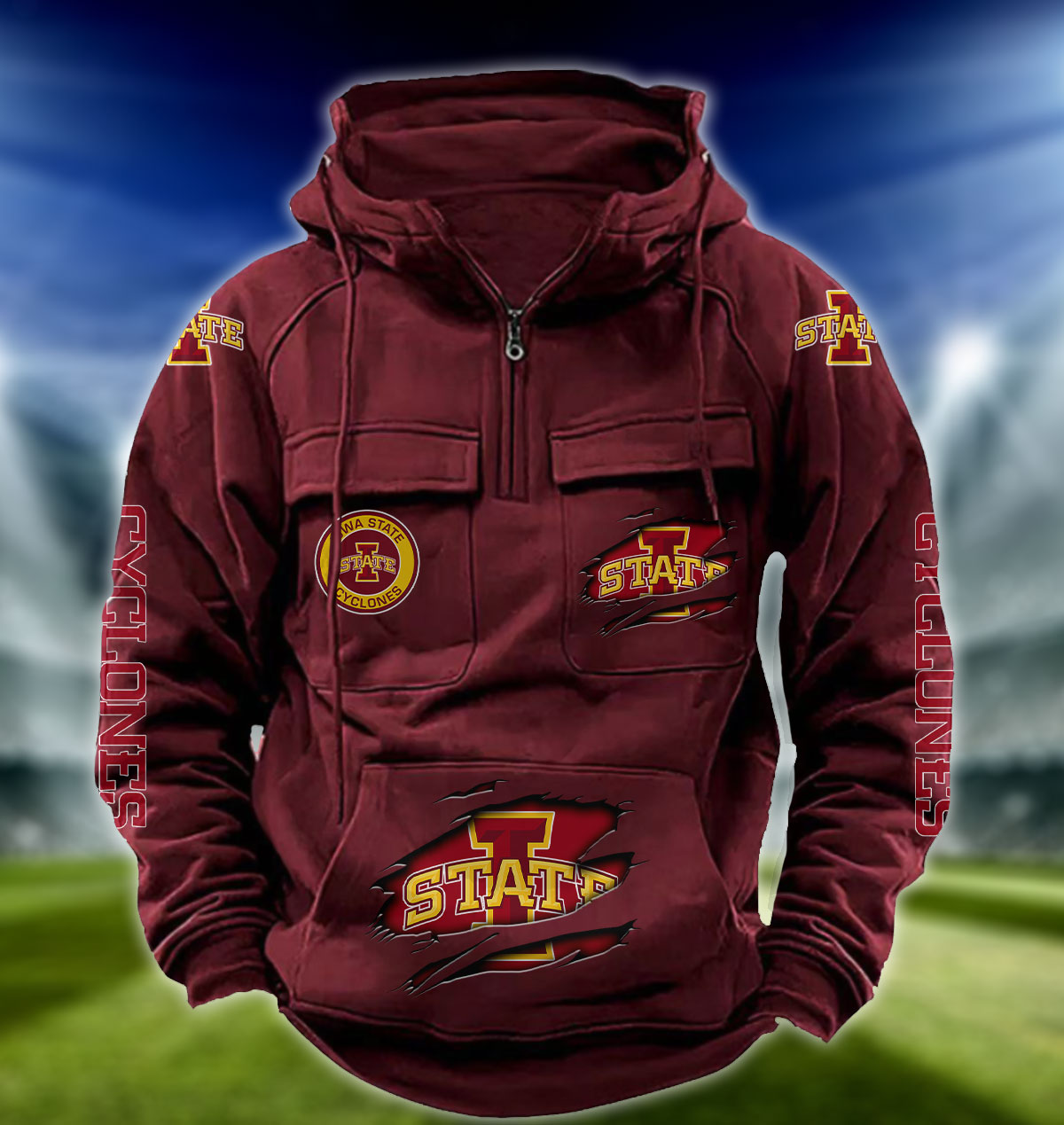 ZNCAA Iowa State Cyclones – Football Men’s Zip-Up Hoodie – Custom Name